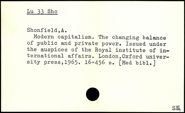 Modern capitalism. The changing balance of public and private power. Issued under the auspices of the Royal institute of international affairs.