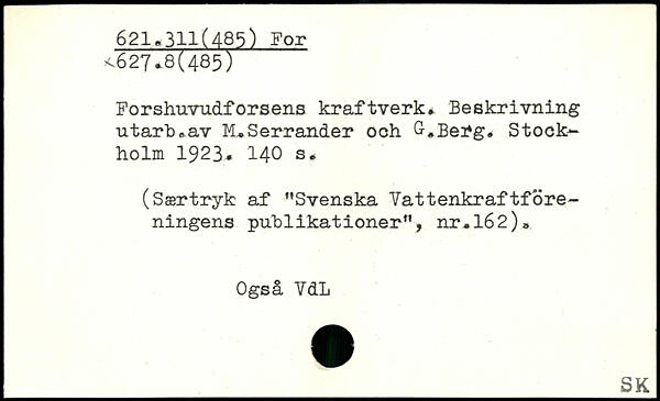 Forshuvudforsens kraftverk, Beskrivning utarbe av H,Serrander och G.Be:£g.