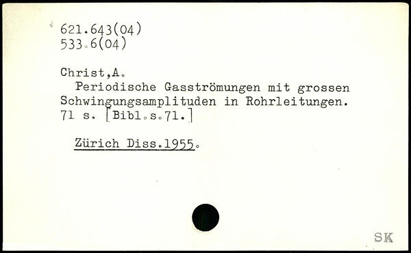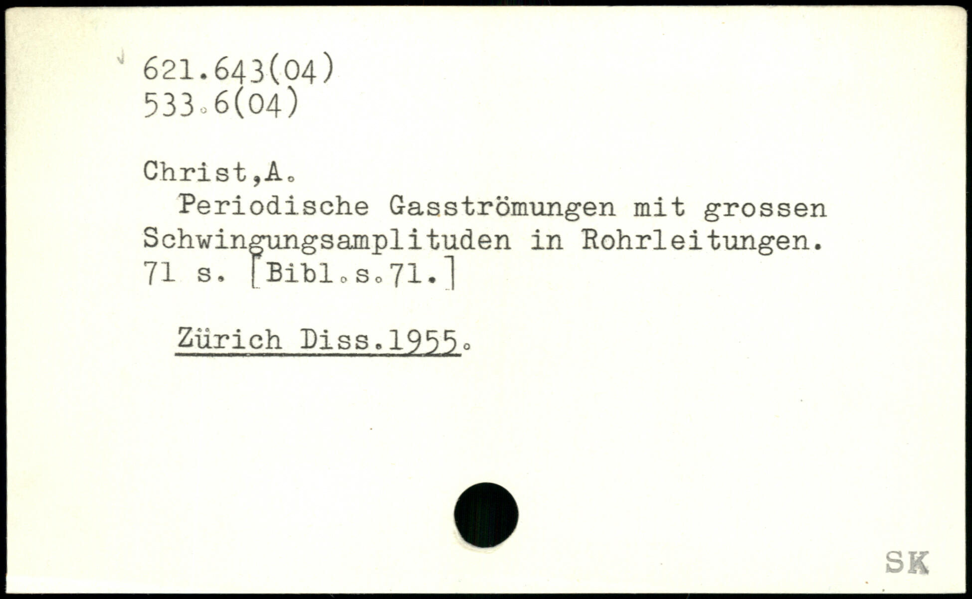 Periodische Gasströmungen mit grossen Schwingungsamplituden in Rohrleitungen.