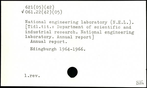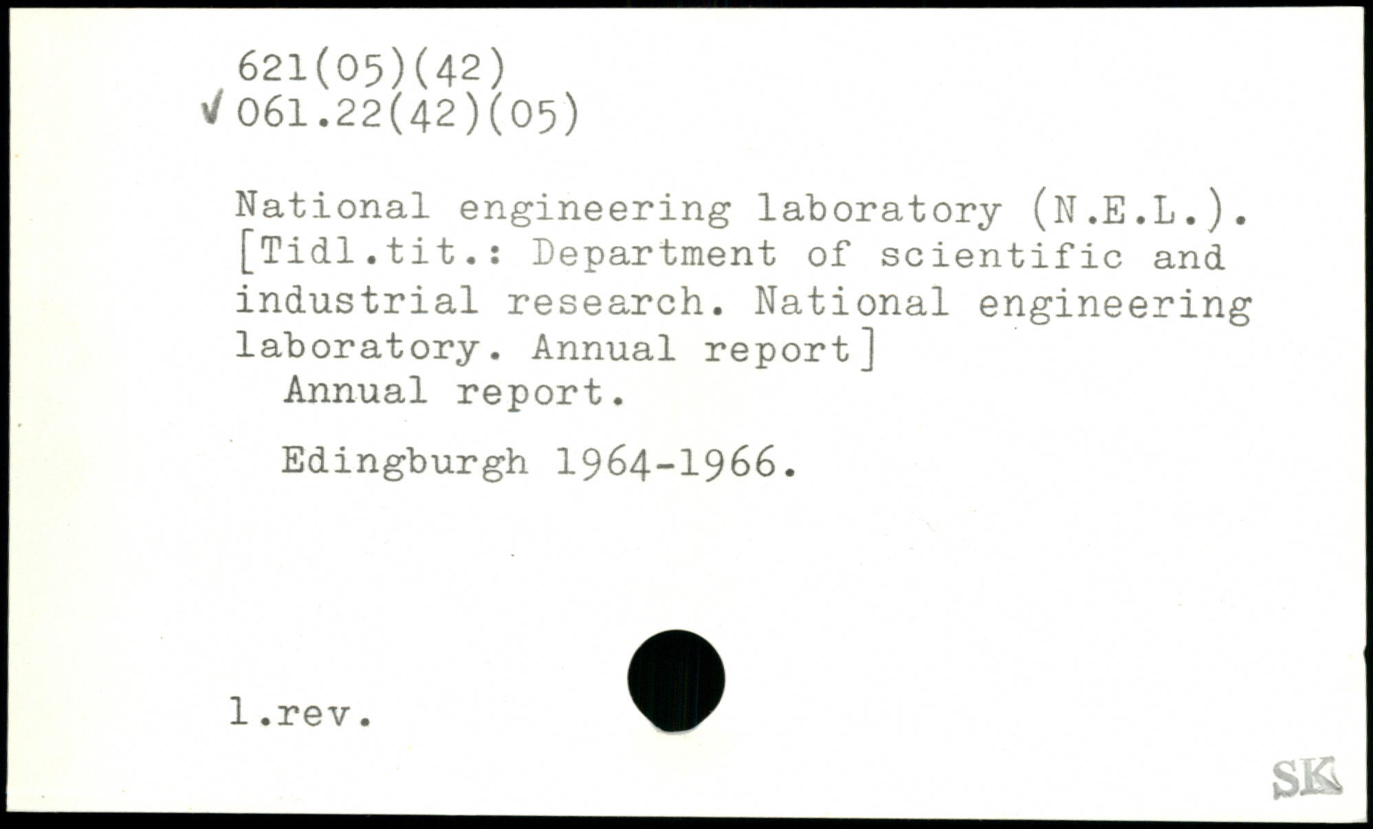 National engineering laboratory (N.E.L.). [Tidl.tit.: Department of scientific and industrial research. National engineering laboratory. Annual report] Annual report. Edingburgh 1964-1966.