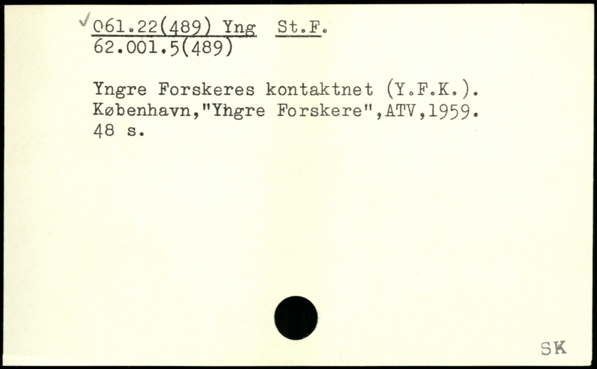 Yngre Forskeres kontaktnet (Y.F.K.). København,"Yhgre Forskere",ATV,1959