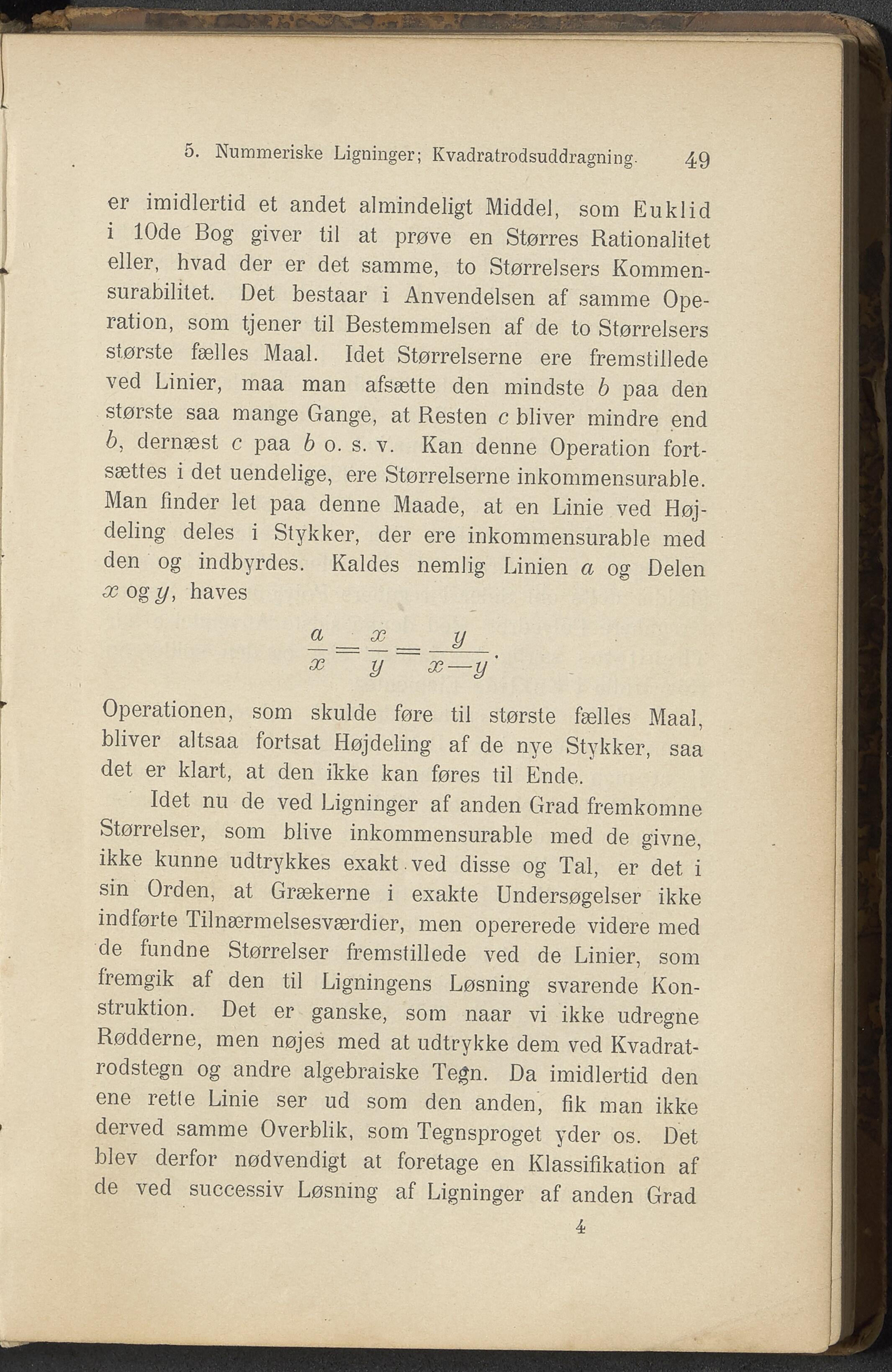 5. Nummeriske Ligninger; Kvadratrodsuddragning. 49