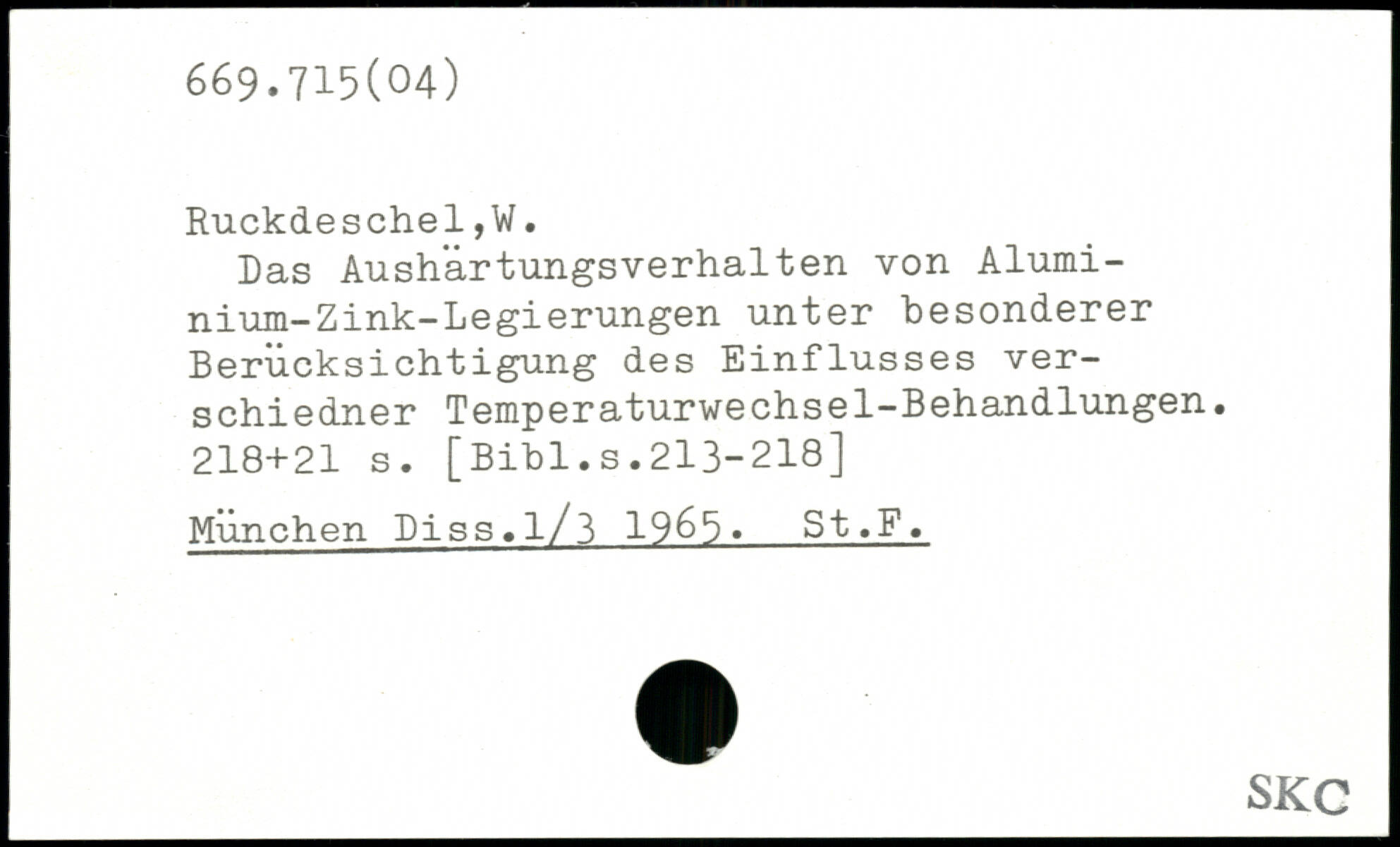 Das Aushärtungsverhalten von Alumi-nium-Zink-Legierungen unter besonderer Berücksichtigung des Einflusses ver-schiedner Temperaturwechsel-Behandlungen.