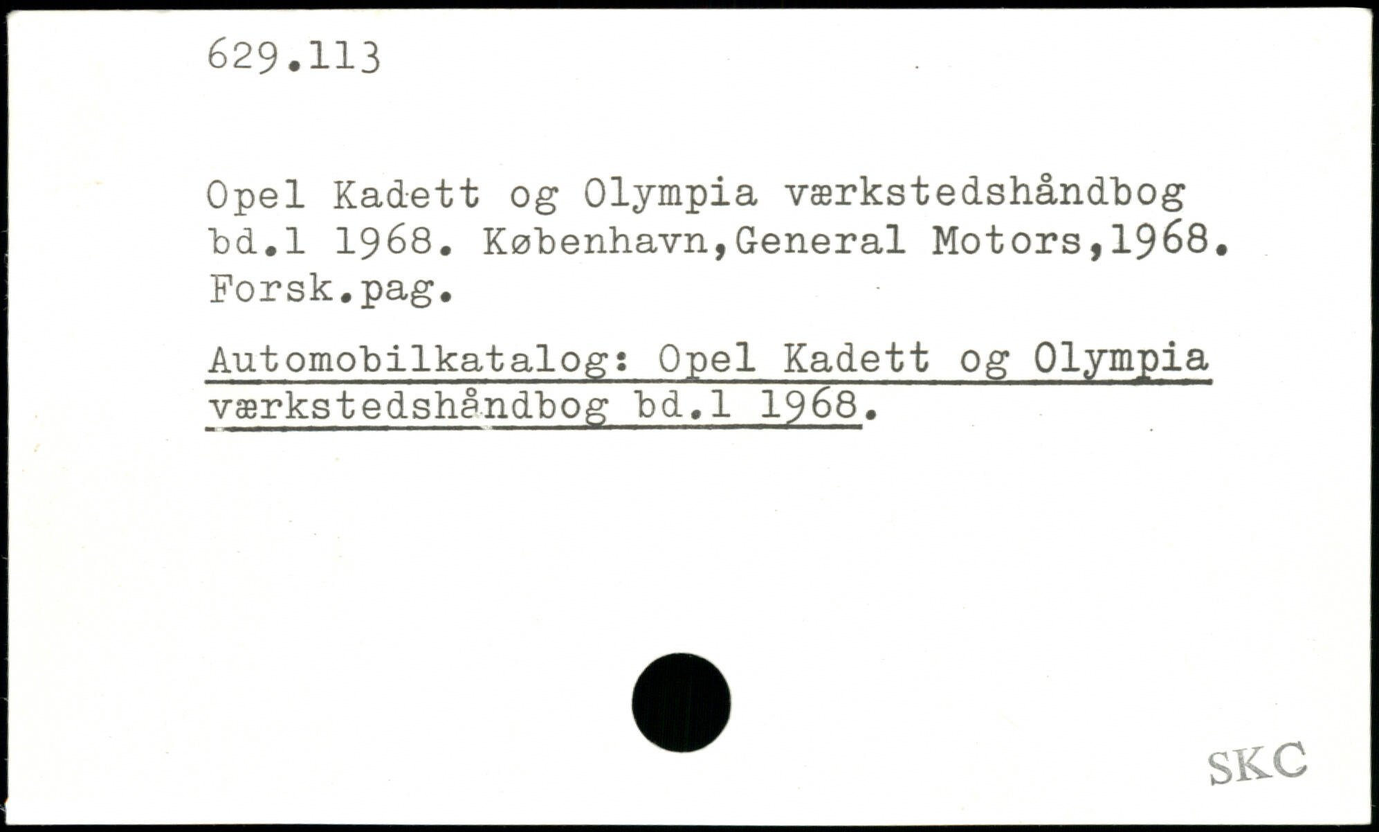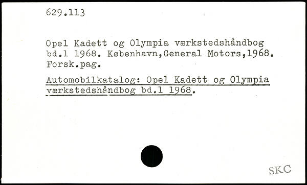 Opel Kadett og Olympia værkstedshåndbog bd.l 1968.