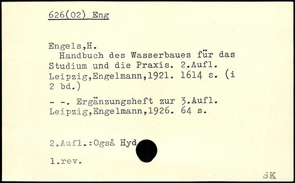 Handbuch des Wasserbaues für das Studium und die Praxis.