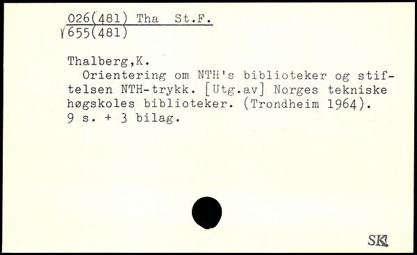 Orientering om NTH' s biblioteker og stiftelsen NTH-trykk. [iJtg.av] Norges tekniske høgskoles biblioteker. (