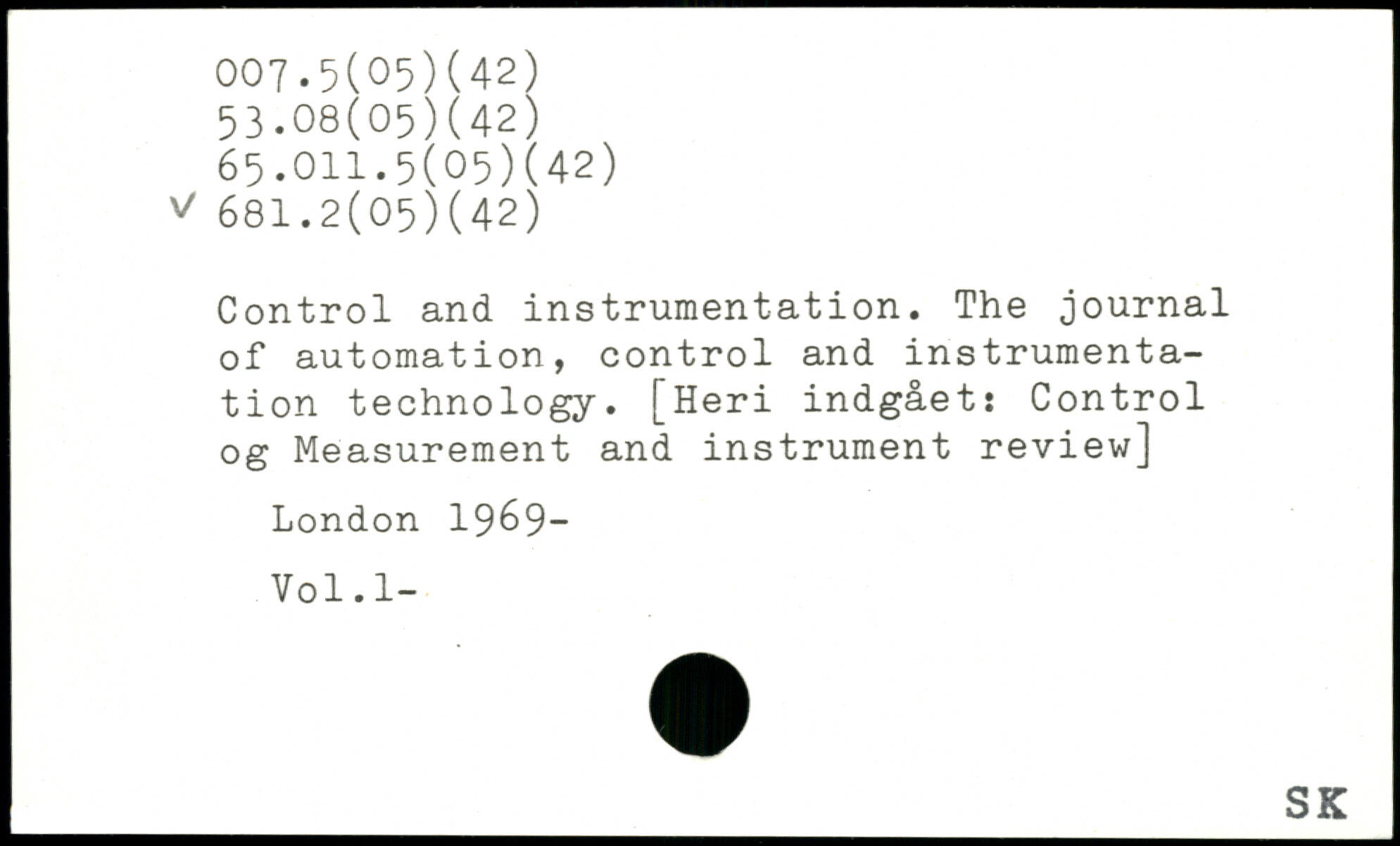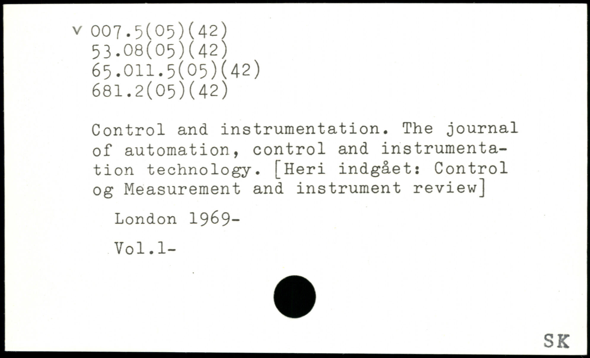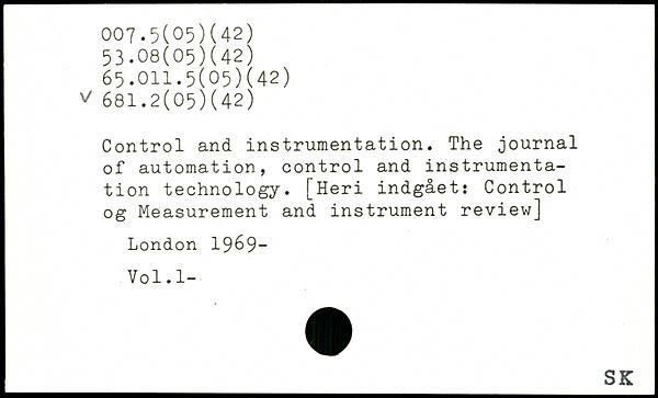Control and instrumentation. The journal of automation, control and instrumentation technology. [Heri indgået: Control og Measurement and instrument review]