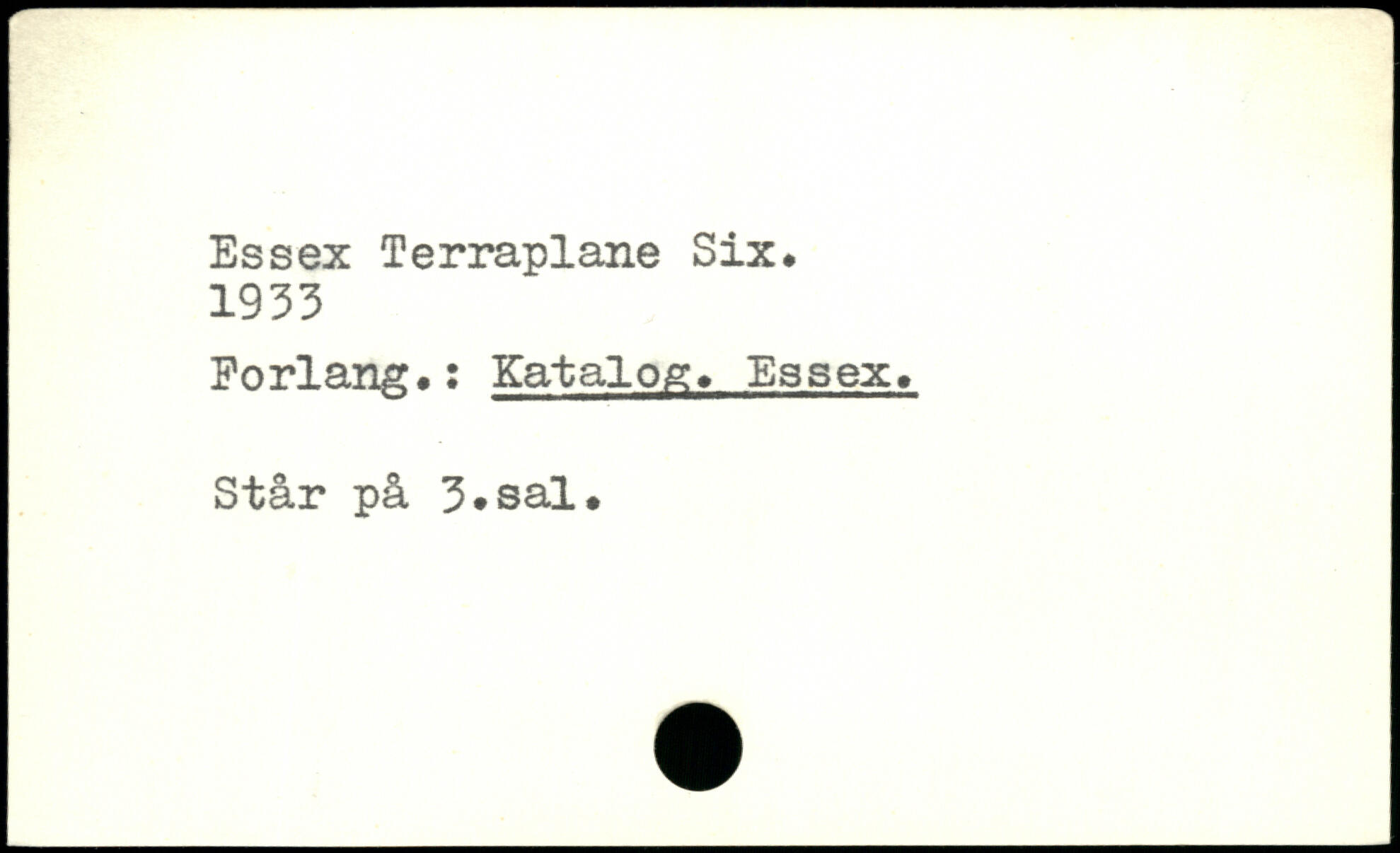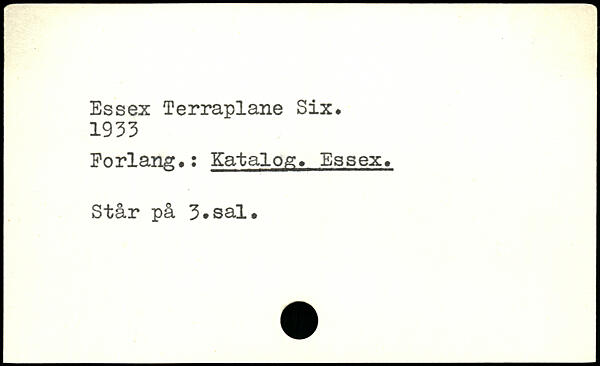 Essex Terraplane Six. 1933 Forlang.: Katalog. Essex. Står på 3.sal.