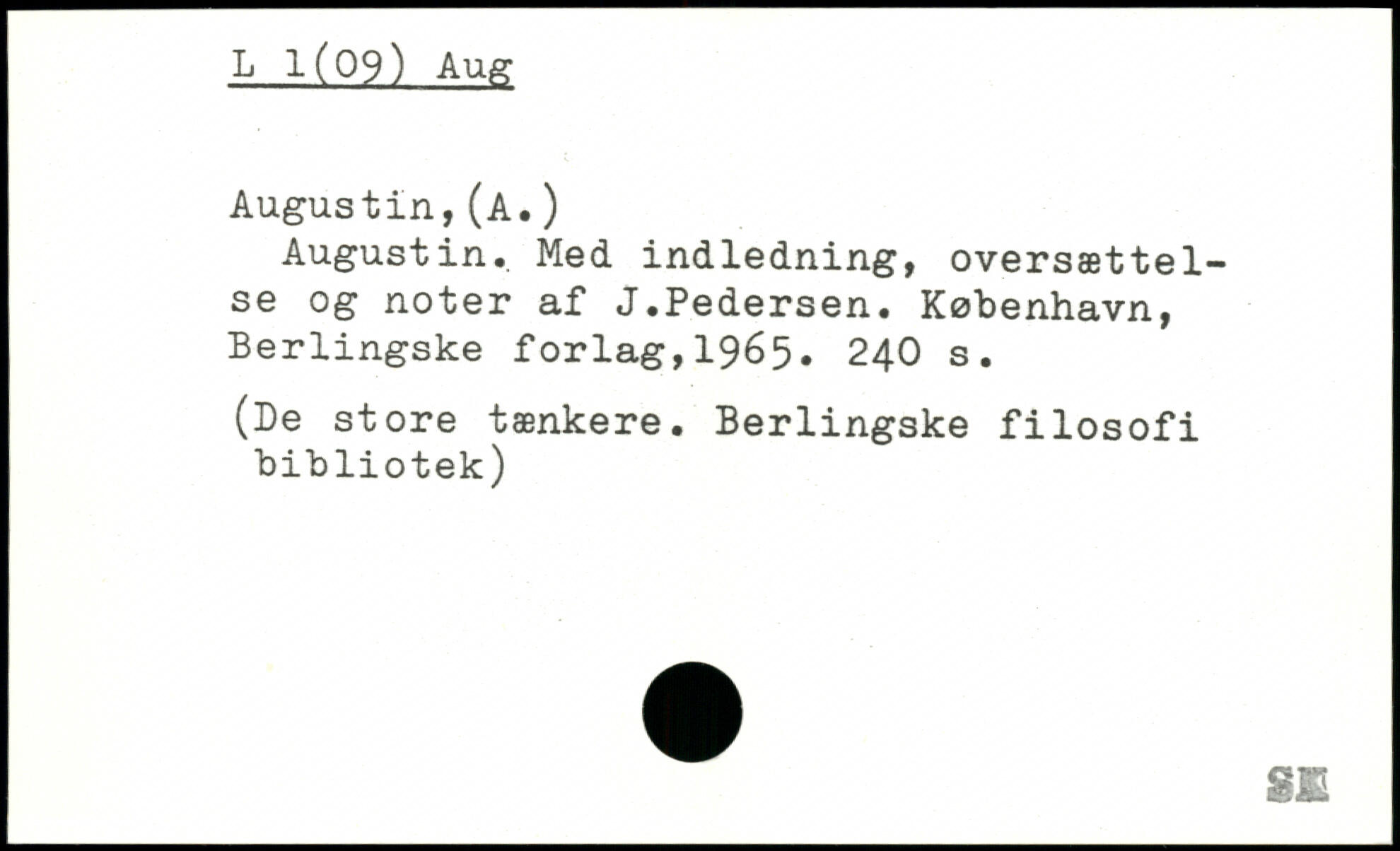 Augustin. Med indledning, oversættelse og noter af J.Pedersen.