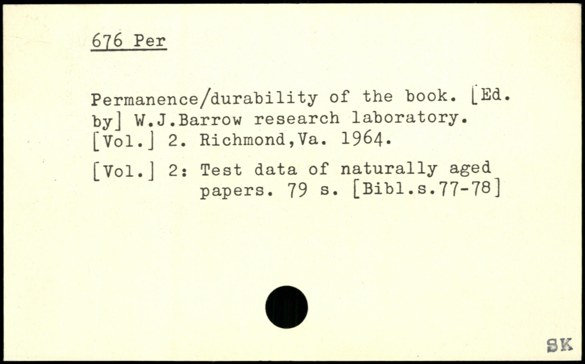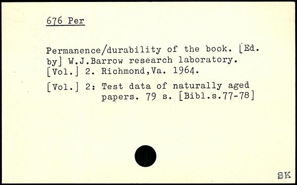 Permanence/durability of the hook, [Ld. byj W.J,Barrow research laboratory. [Vol.J 2. Richmond,Va. 1964.