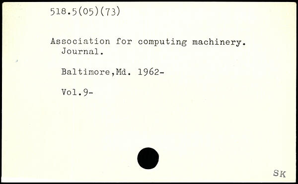 Association for computing machinery. Journal. Baltimore,Md. 1962-