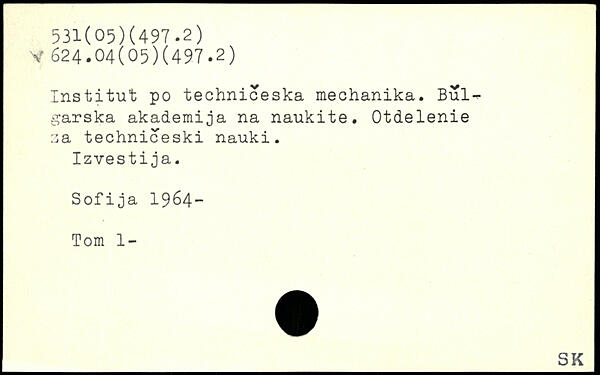 Institut po techniceska meohanika. Bul-. garska akademija na naukite. Otdelenie sa techniceski nauki. Izvestija. Sofija 1964-Tom 1-