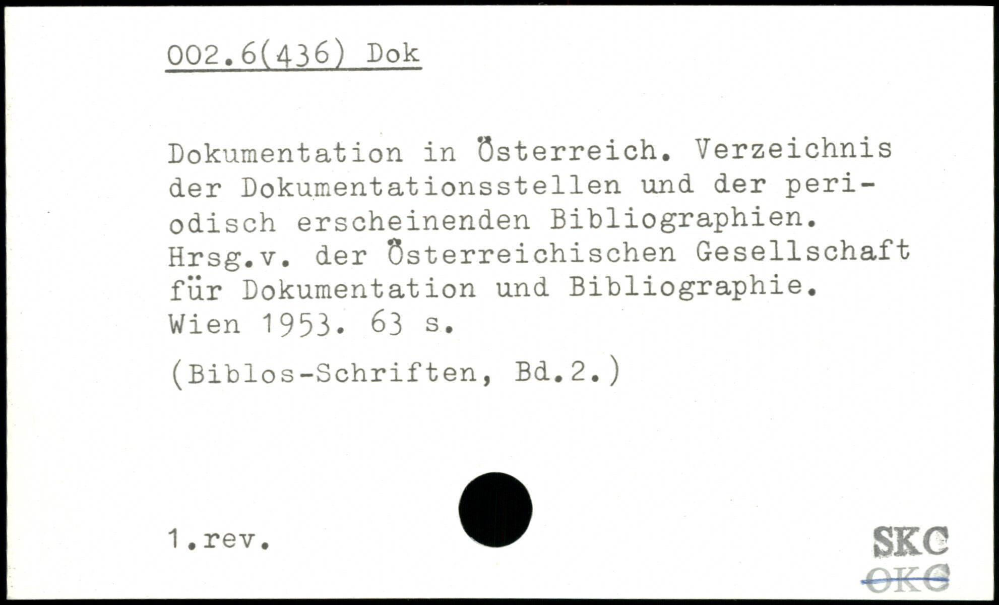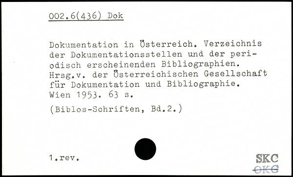 Dokumentation in 'Österreich. Verzeichnis der Dokumentationsstellen und der periodisch erscheinenden Bibliographien. Hrsg.v. der Österreichischen Gesellschaft für Dokumentation und Bibliographie.