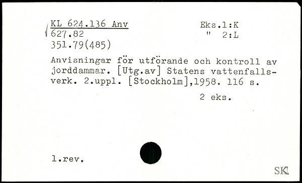 Anvisning-ar för utförande och kontroll av jorddammar. [Utg.av] Statens vattenfalls-verk.
