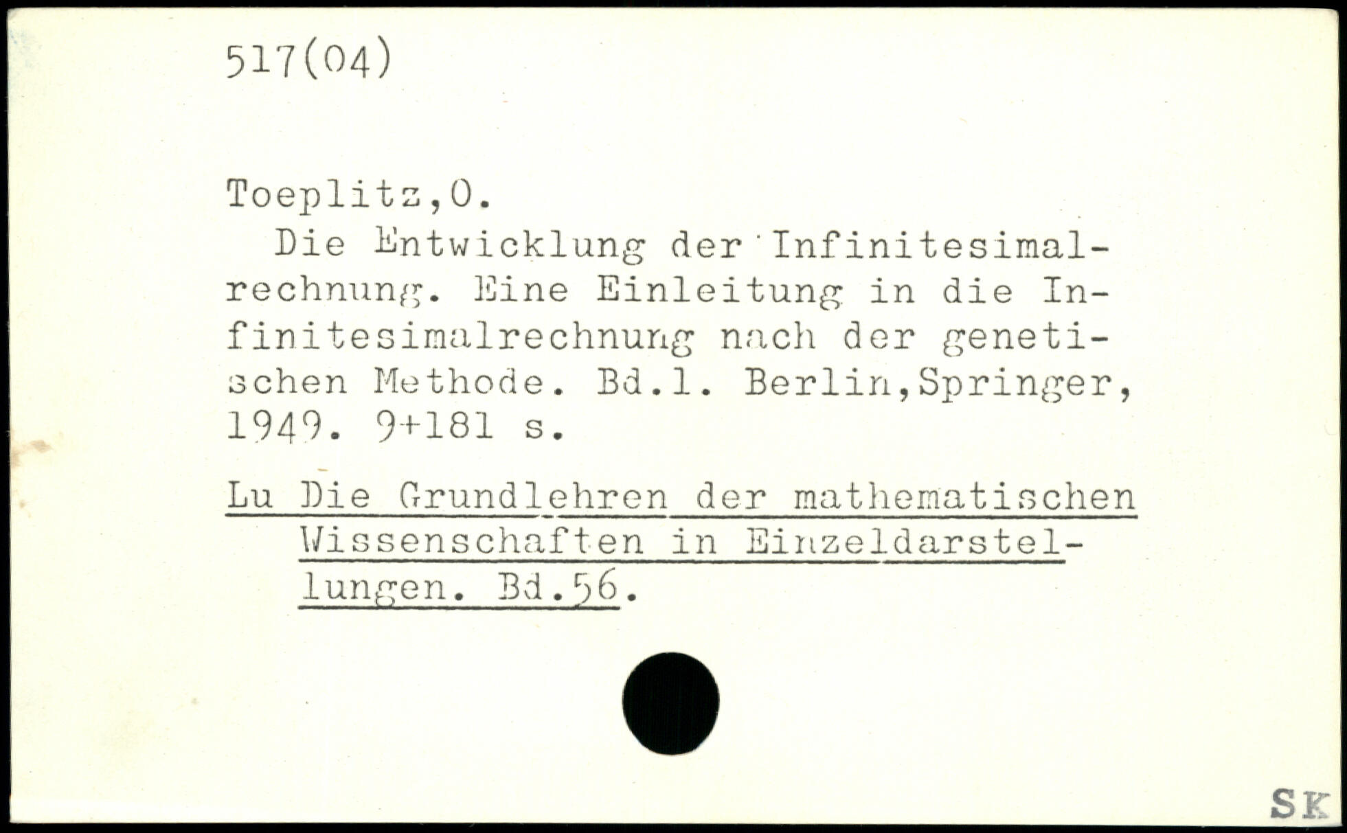 Die Entwicklung der'Infinitesimal-rechnung. Eine Einleitung in die Infinitesimalrechnung nach der genetischen Methode. Bd.l.