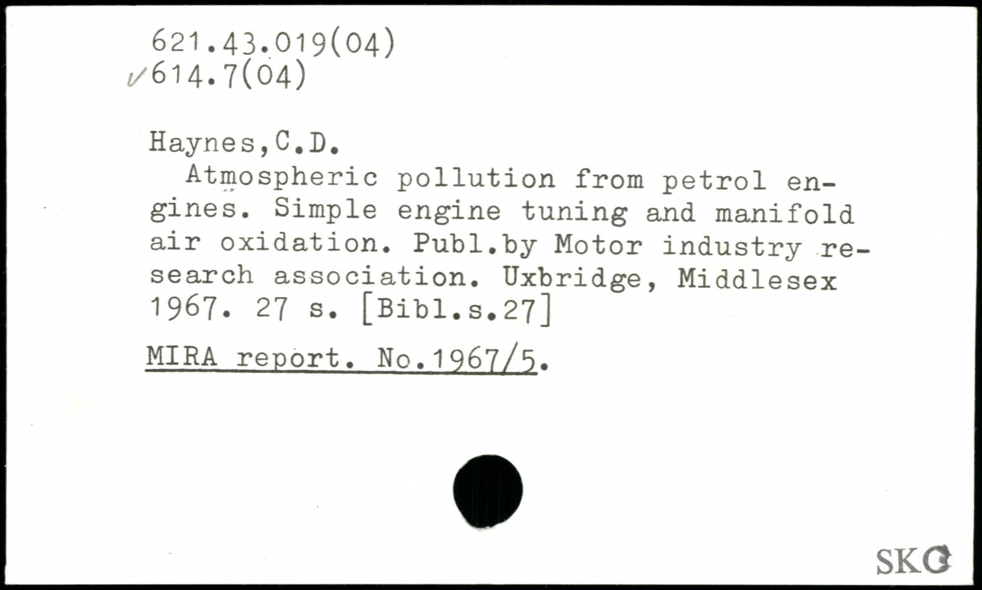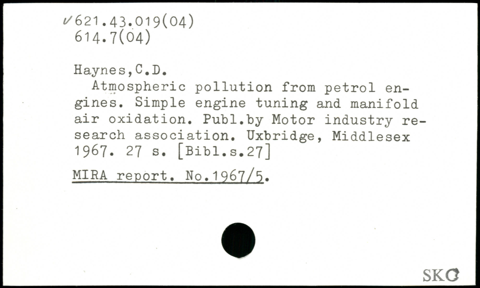 Atmospheric pollution from petrol engines. Simple engine tuning and manifold air oxidation.