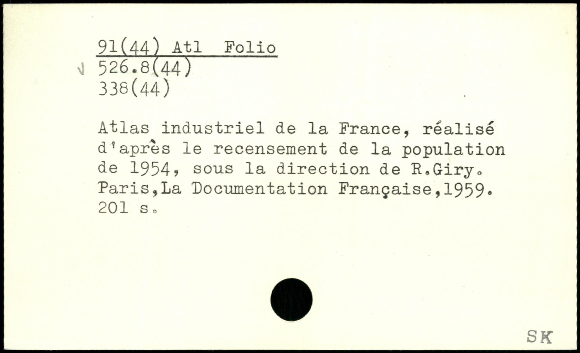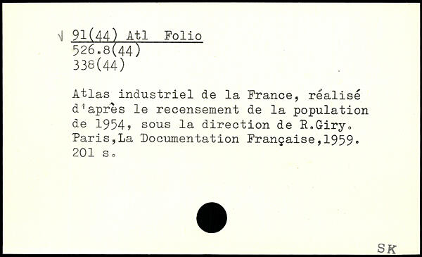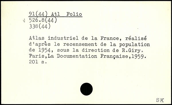 Atlas industriel de la France, réalisé d'apres le recensement de la population de 1954, sous la direction de R.Giry. Paris,La Documentation Française,1959