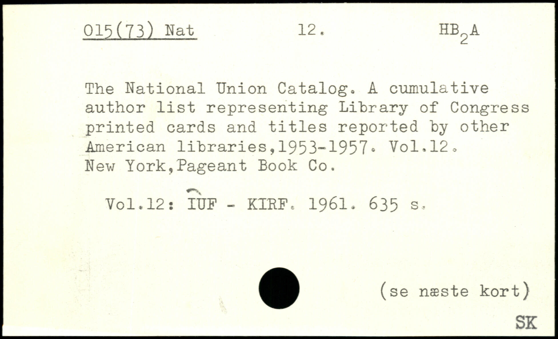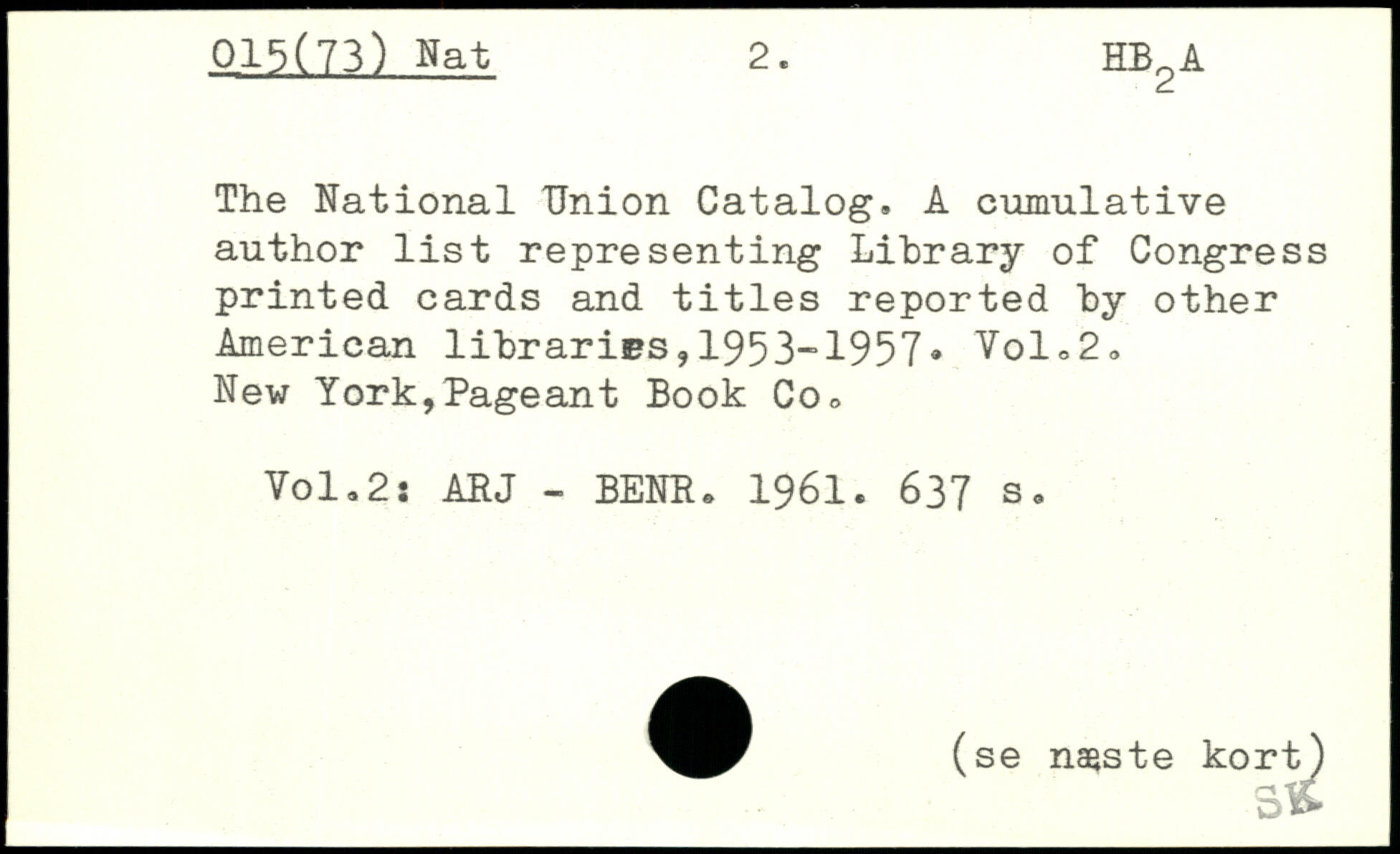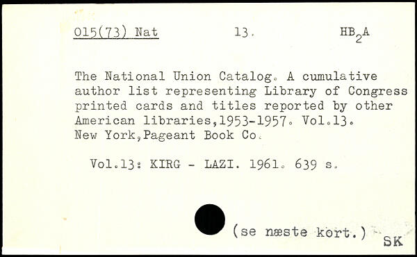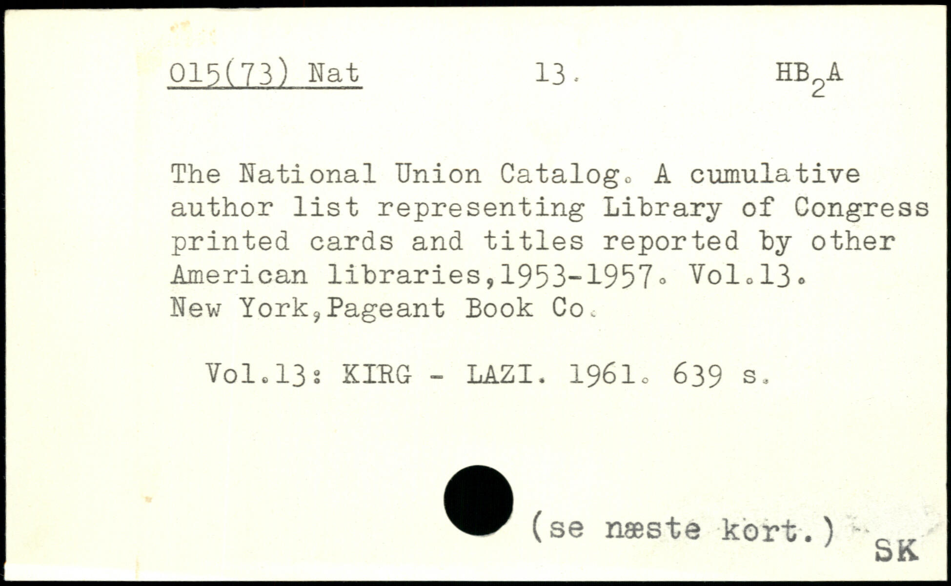 The National Union Catalog, A cumulative author list representing Library of Congress printed cards and titles reported by other American libraries. 1953-1957. Vol,5. New York,Pageant Book Co. Vol,5: CATO - CO. 1961.