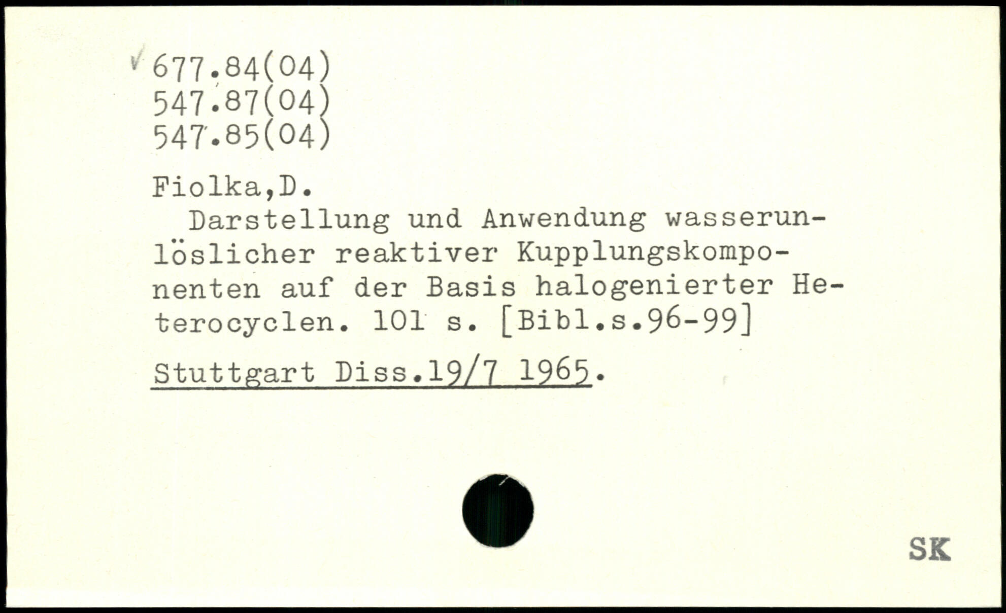 Darstellung und Anwendung wasserunlöslicher reaktiver Kupplungskomponenten auf der Basis halogenierter Heterocyclen.