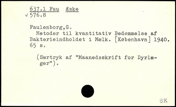 Metoder til kvantitativ Bedømmelse af Bakterieindholdet i Mælk.