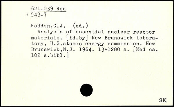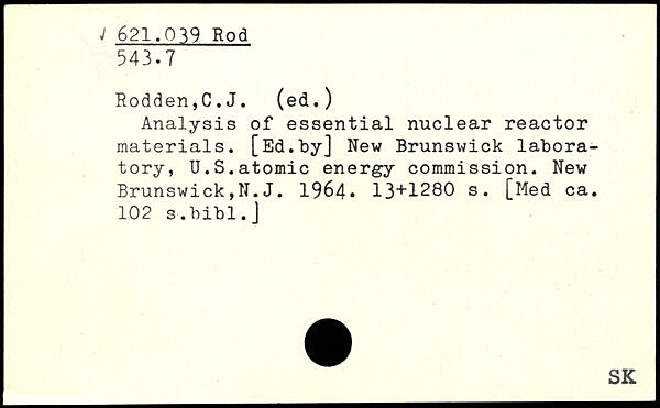 Analysis of essential nuclear reactor materials. [Ed.by] New Brunswick laboratory, ÏÏ.S.atomic energy commission. New Brunswick,N. J. 1964.