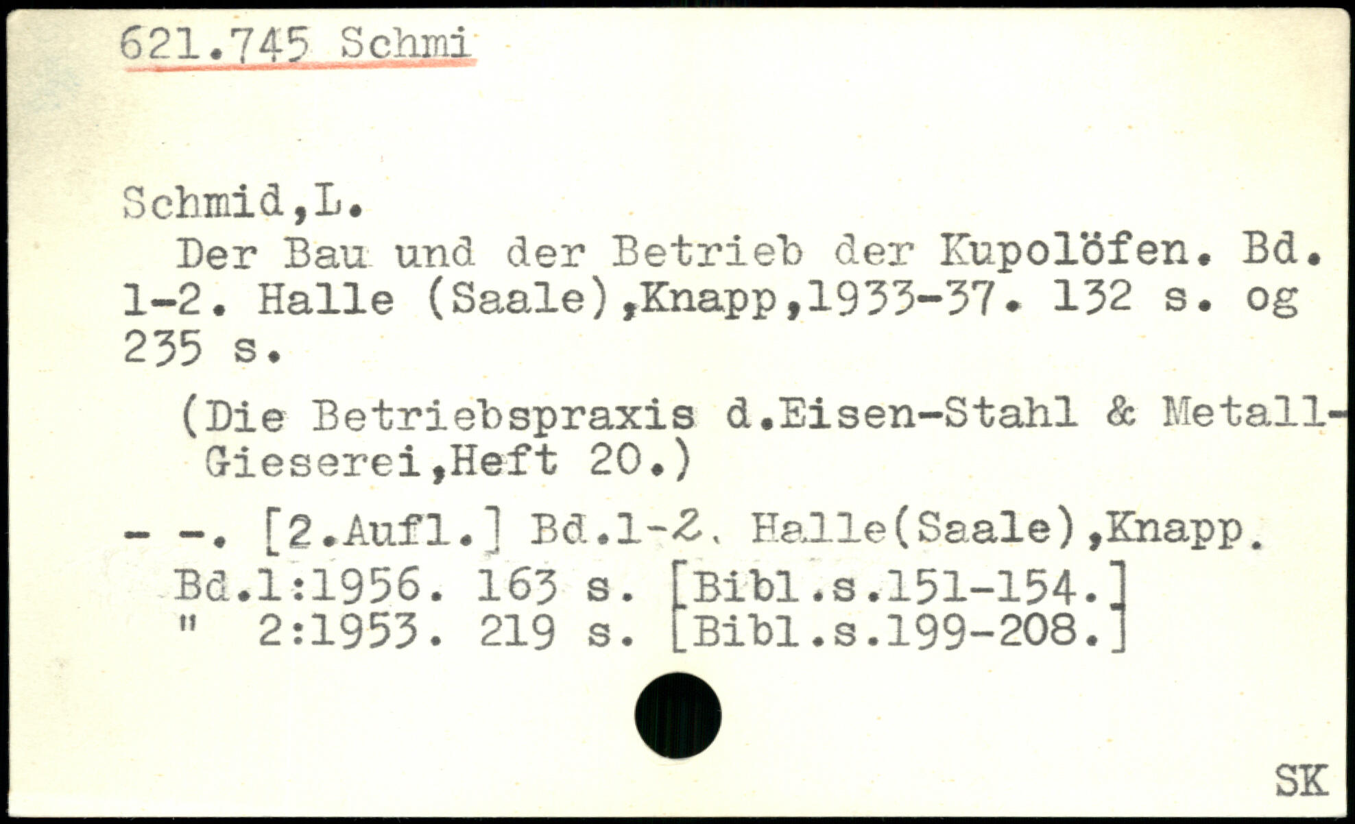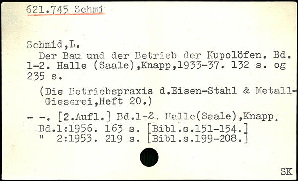 Der Bau und der Betrieb der Kupolöfen. Bd. 1-2. Halle (Saale),Knapp,1933-37.