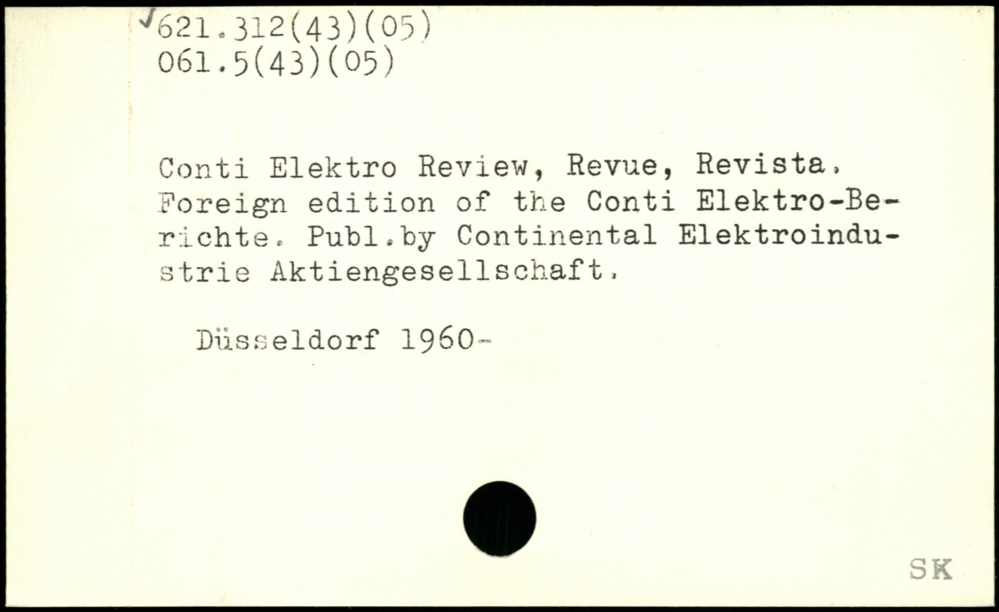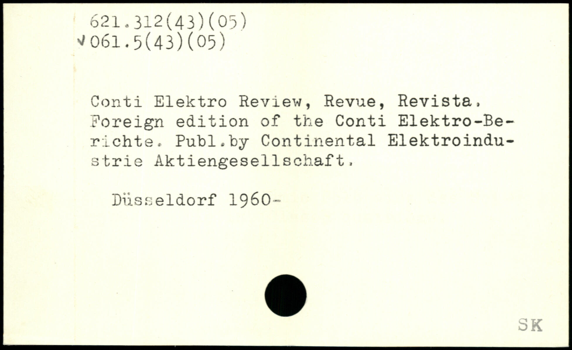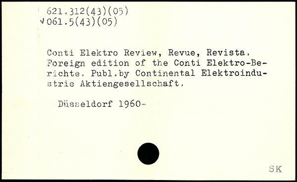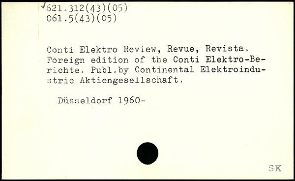 Conti Elektro Review, Revue, Revista, Foreign edition of the Conti Elektro-Be-richte. Publ,by Continental Elektroindustrie Aktiengesellschaft, Düsseldorf 1960-
