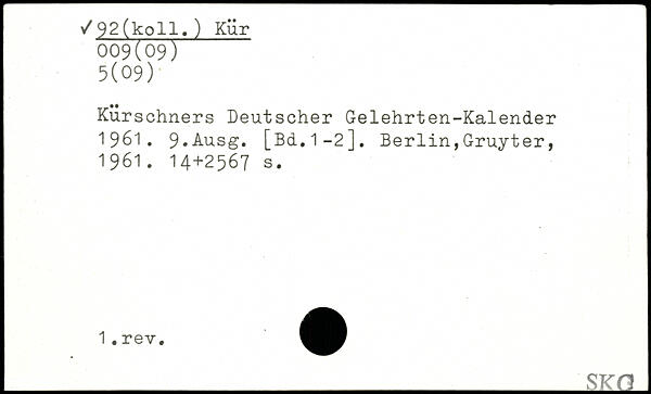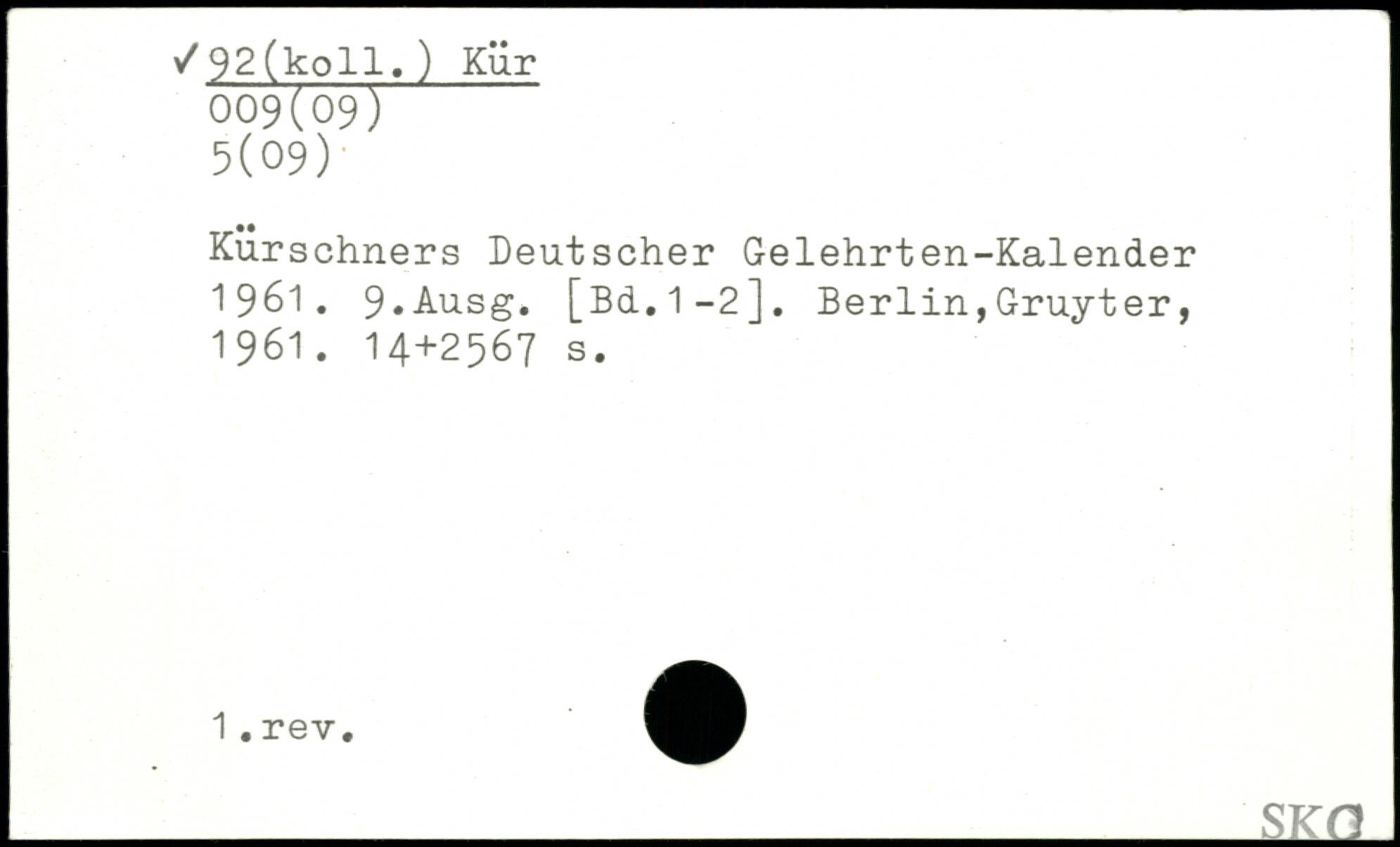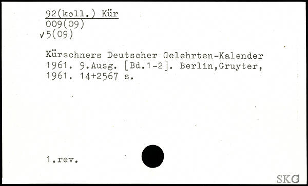 Kürschners Deutscher Gelehrten-Kalender 1961. 9.Ausg. [BcL.1-2].