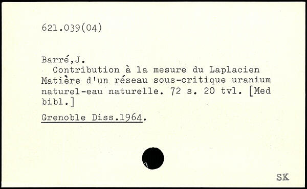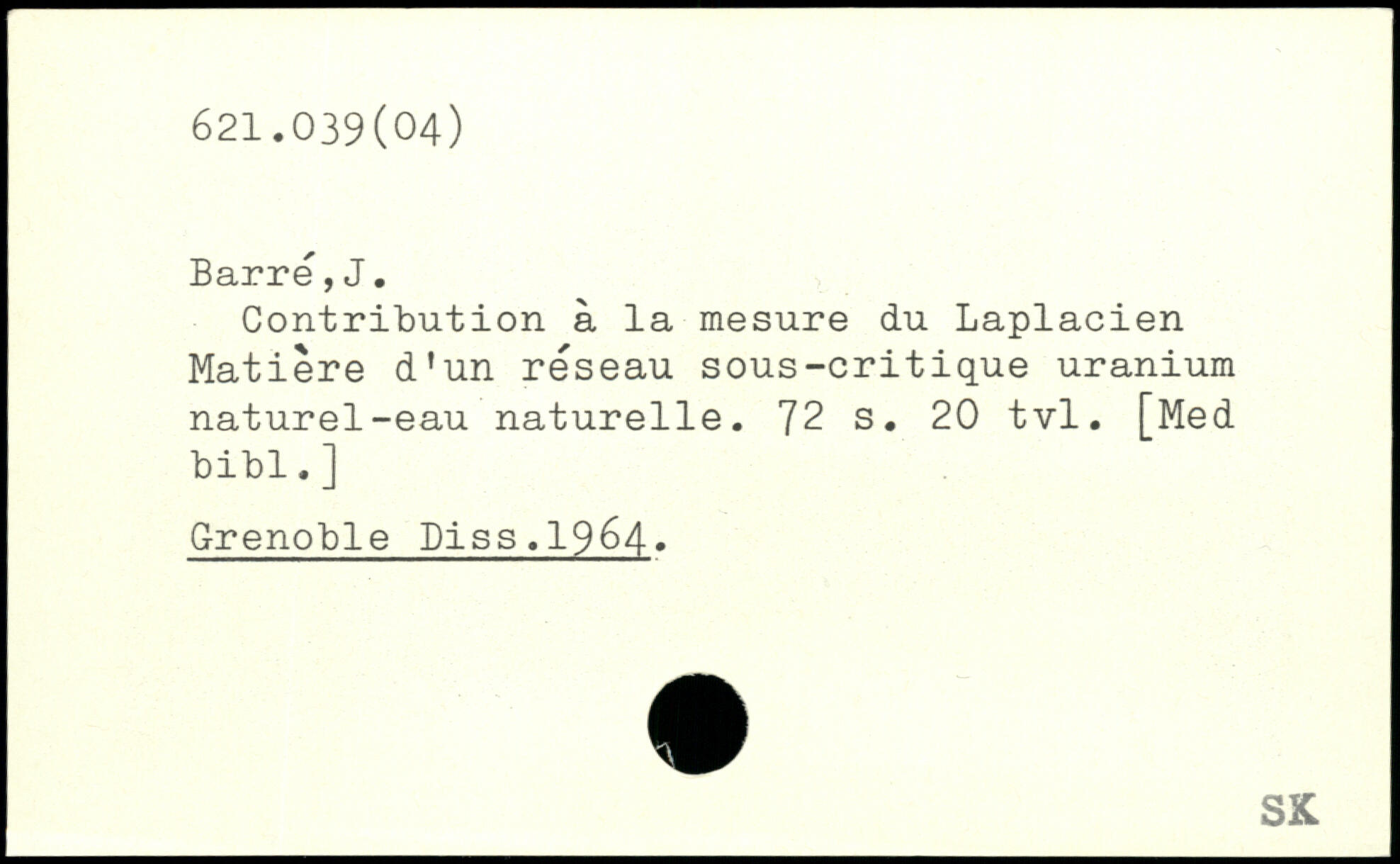 Contribution à la mesure du Laplacien Matière d'un réseau sous-critique uranium naturel-eau naturelle.
