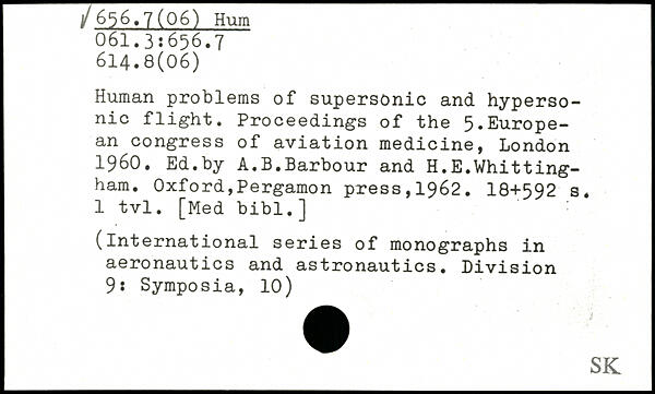 Human problems of supersonic and hypersonic flight. Proceedings of the 5.European congress of aviation medicine