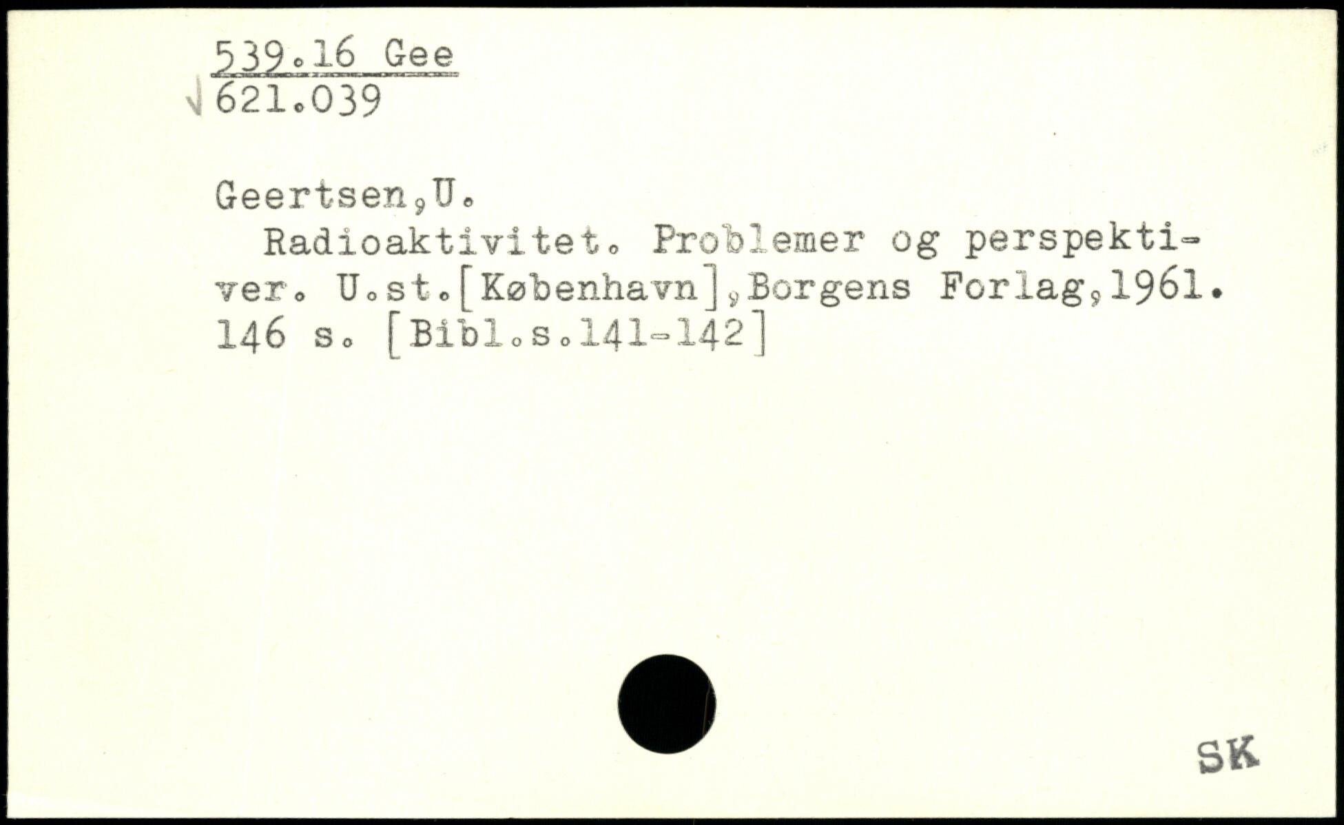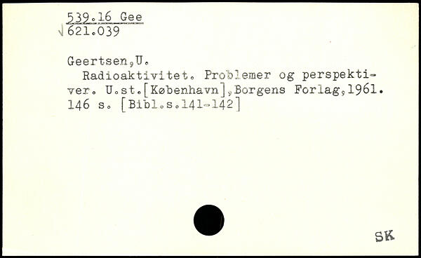 Geertsen9UB Radioaktivitet o Problemer og perspektiver. U.sto[København]yBorgens Forlags 1961.
