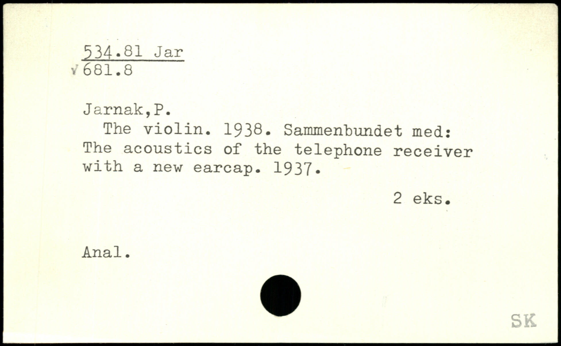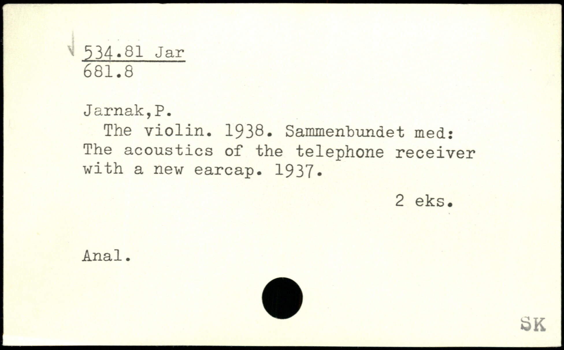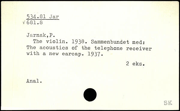 The violin. 1938. Sammenbundet med: The acoustics of the telephone receiver with a new earcap. 1937.