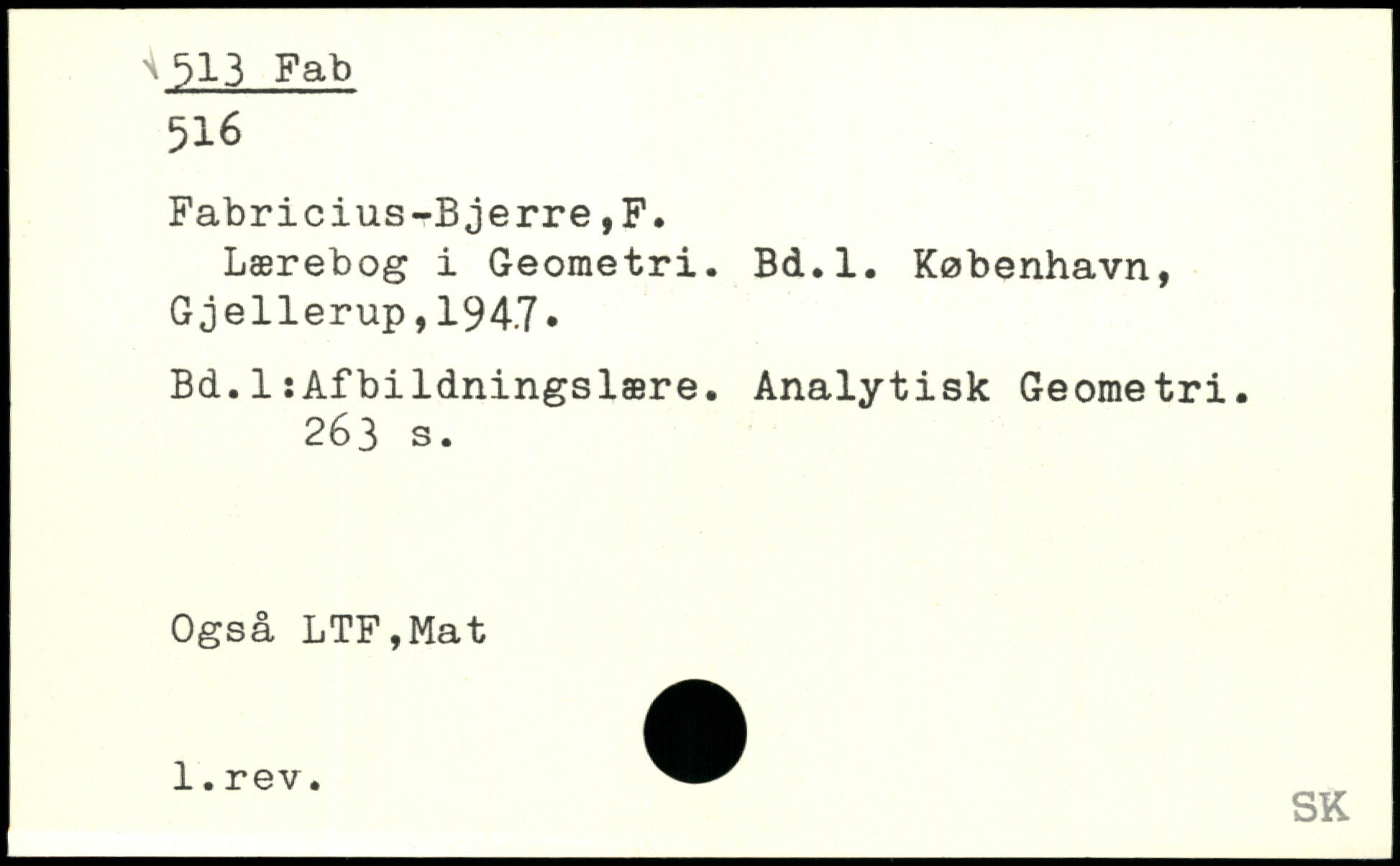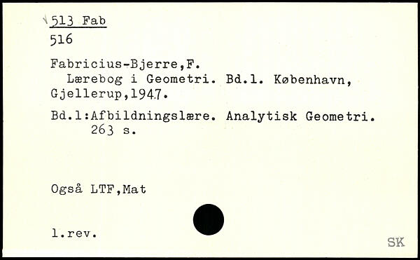Lærebog i Geometri. Bd.l. København, Gjellerup, 194.7.