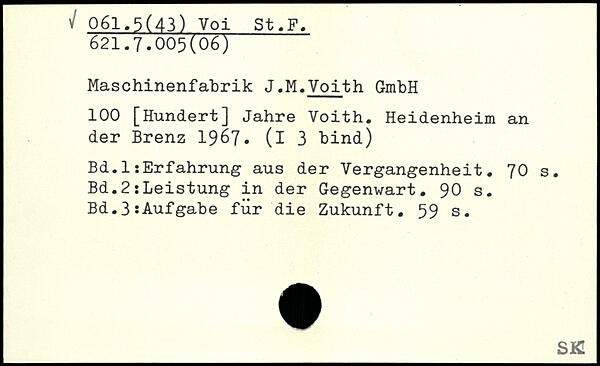 Maschinenfabrik J.M.Voith GmbH 100 [Hundert] Jahre Voith. Heidenheim an der Brenz 1967. (i 3 bind)