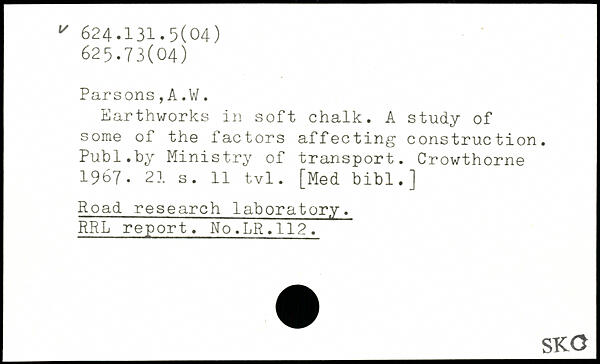 Earthworks in soft chalk. A study of some of the factors affecting construction.