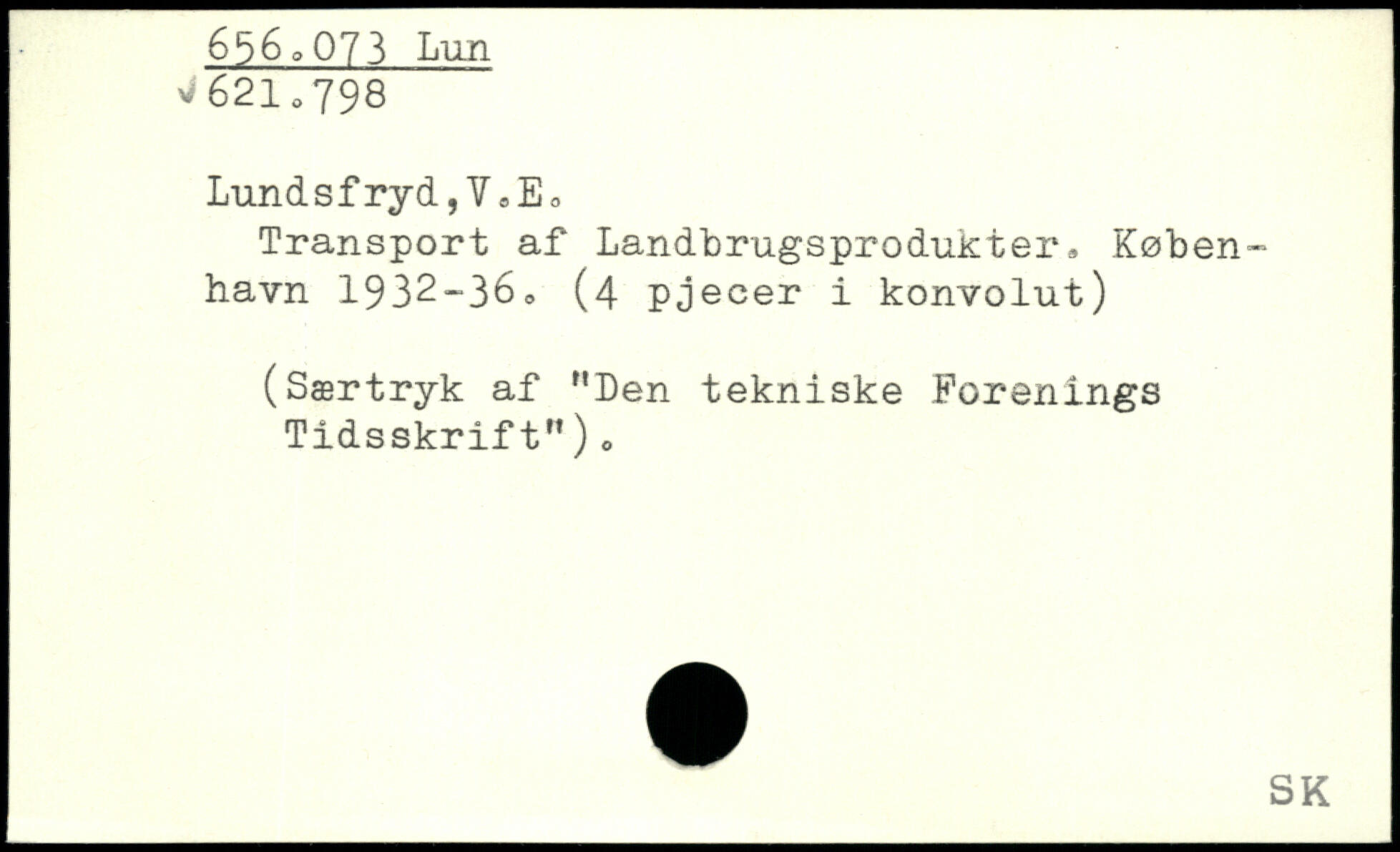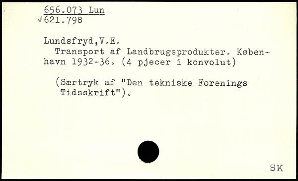Transport af Landbrugsprodukter. Køben-havn 1932-36. (4 pj ecer i konvolut) (Særtryk af MDen tekniske Forenings Tidsskrift")
