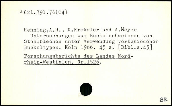 Untersuchungen zum Buckelschweissen von Stahlblechen unter Verwendung verschiedener Buckeltypen.