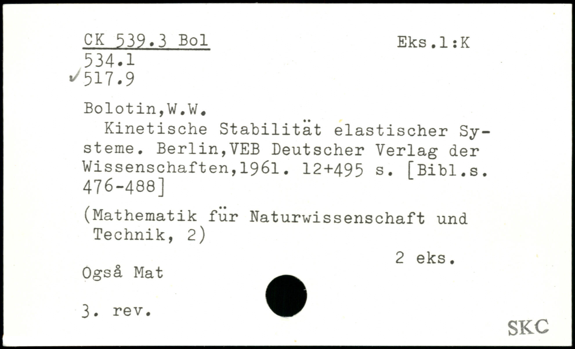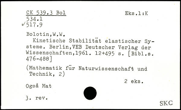 Kinetische Stabilität elastischer Systeme. Berlin,VEB Deutscher Verlag der Wissenschaften,1961.