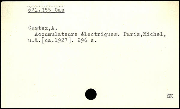 Accumulateurs électriques. Paris,Michel, u.â.[ca. 1927].