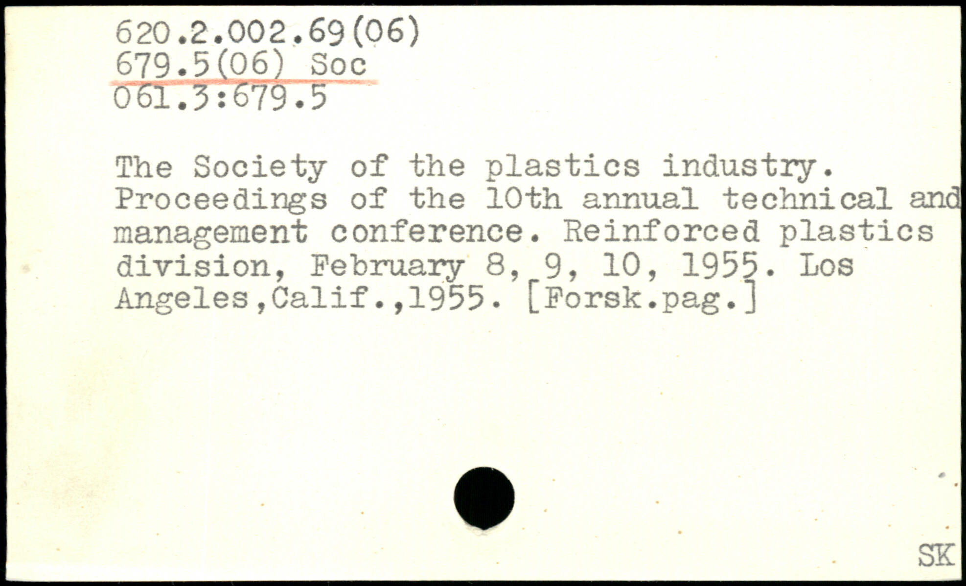 The Society of the plastics industry. Proceedings of the 10th annual technical and management conference. Reinforced plastics division, February 8, 9, 10, 1955.