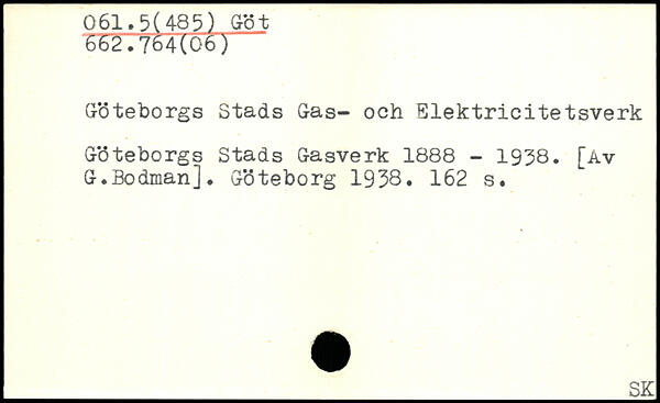 Göteborgs Stads Gas- och Elektricitetsverk Göteborgs Stads Gasverk 1888 - 1958. [av G.Bodman]. Göteborg 1938.