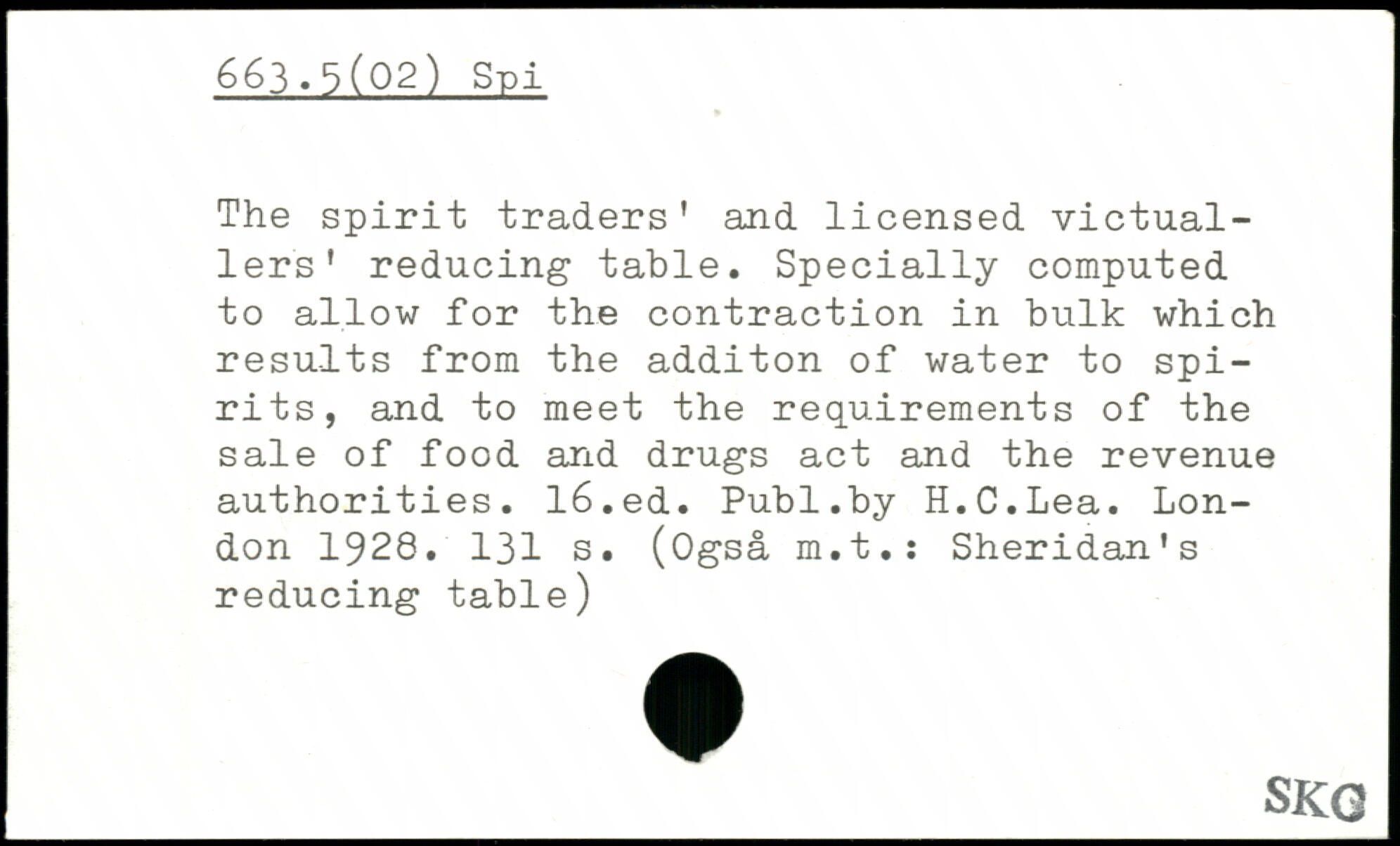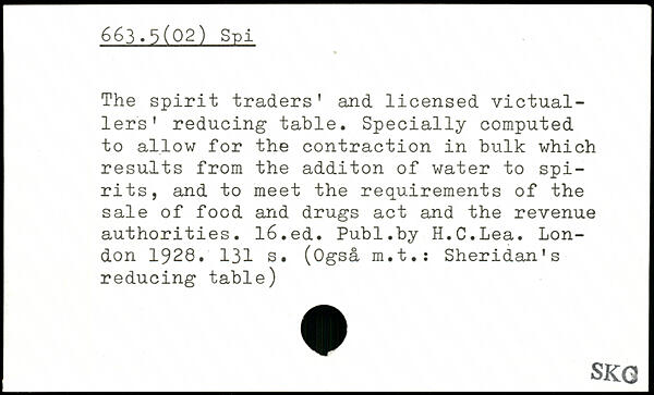 The spirit traders' and licensed victuallers' reducing table. Specially computed to allow for the contraction in bulk which results from the additon of water to spirits, and to meet the requirements of the sale of food and drugs act and the revenue authorities.