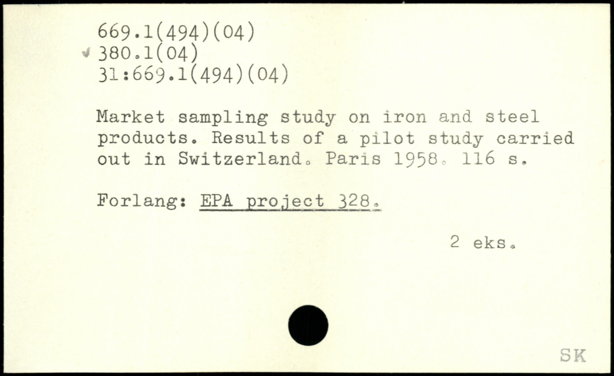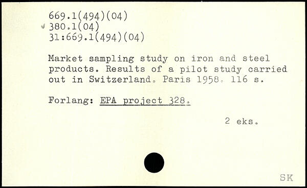 Market sampling study on iron and steel products. Results of a pilot study carried out in Switzerland:.