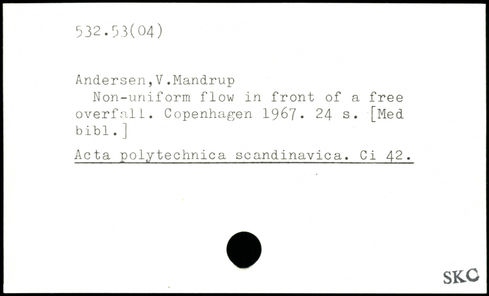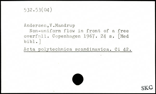 Andersen,V.Mandrup Non-uniform flow in front of a free overfall.