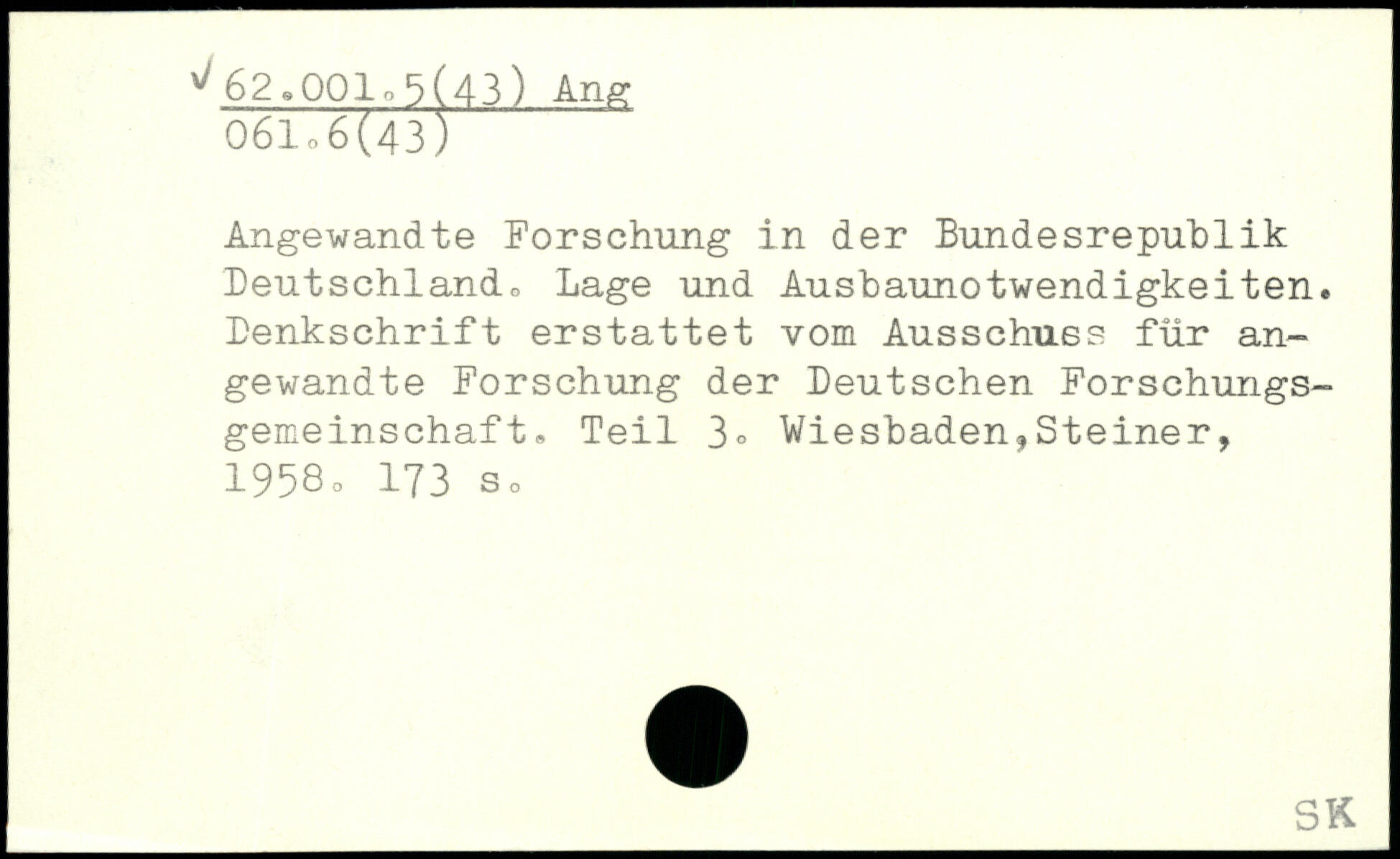 Angewandte Forschung in der Bundesrepublik Deutschland, Lage und Ausbaimotwendigkeiten. Denkschrift erstattet vom Ausschuss für angewandte Forschung der Deutschen Forschungsgemeinschaf t. Teil 3.