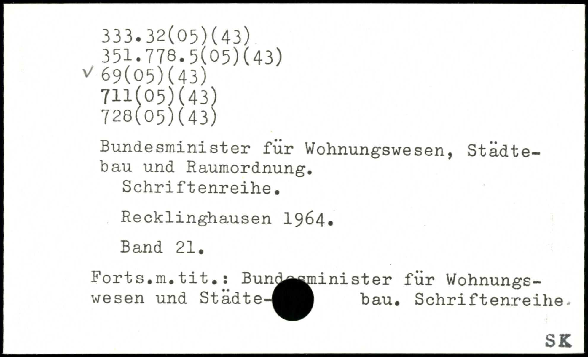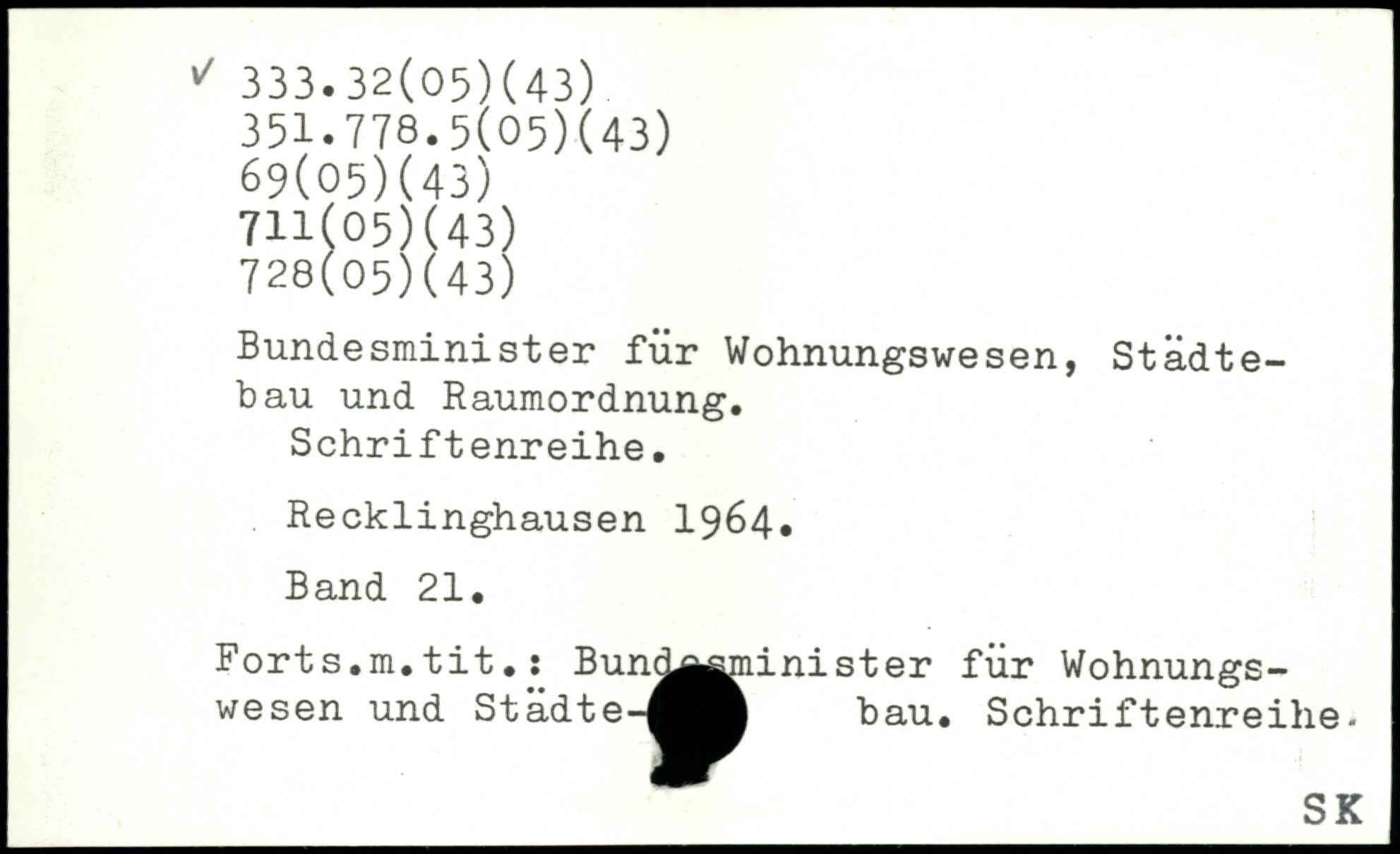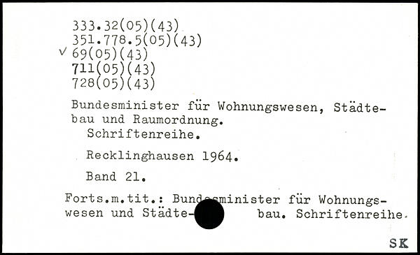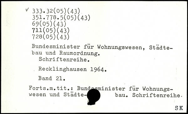 Bundesminister für Wohnungswesen, Städtebau und Raumordnung. Schriftenreihe. Recklinghausen 1964. Band 21. Forts.m. tit.: Bun^^jninister für Wohnungswesen und Städte-^^Ä bau. Schriftenreihe-