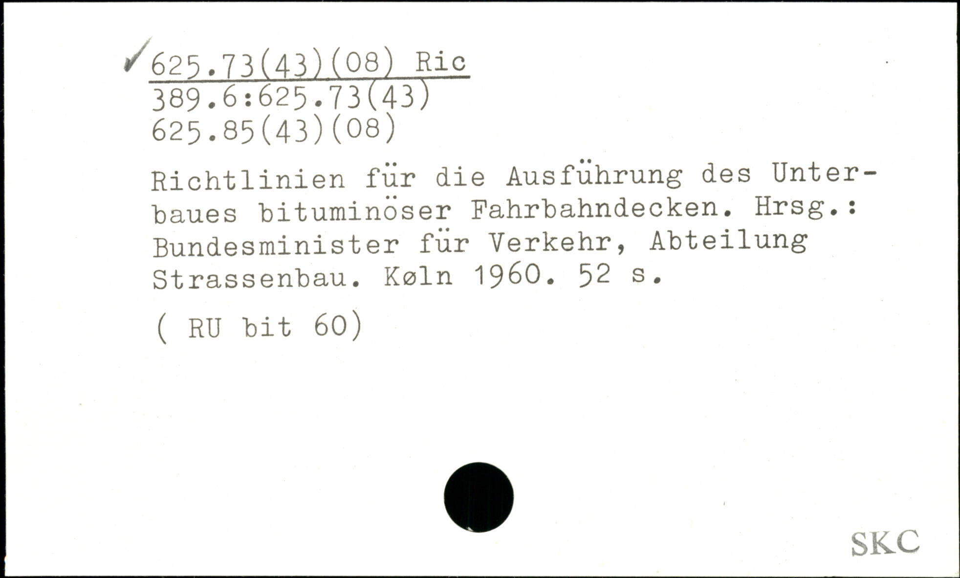 Richtlinien für die Ausführung des Unterbaues bituminöser Fahrbahndecken. Hrsg.: Bundesminister für Verkehr, Abteilung Strassenbau. Kein 1960.
