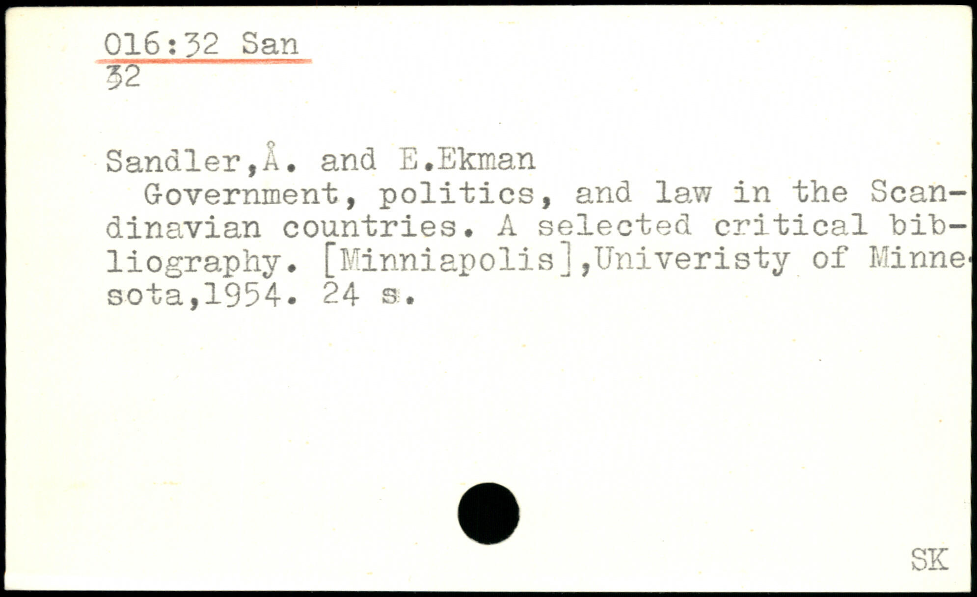 Government, politics, and law in the Scandinavian countries. A selected critical bibliography. [Minniapolis],Univeristy of Minnesota ,1954-.