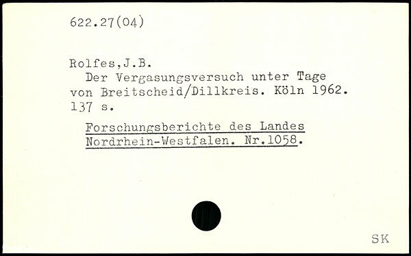 Der Vergasungsversuch unter Tage von Breitscheid/Dillkreis.