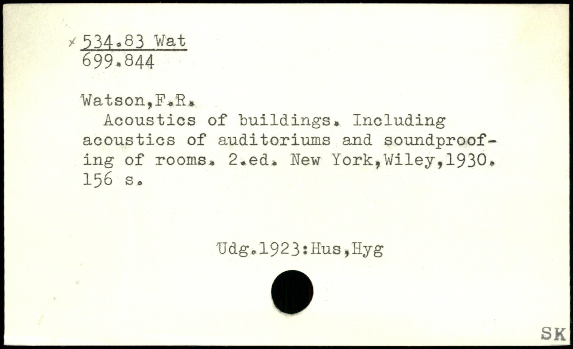 Acoustics of buildings. Including acoustics of auditoriums and soundproofing of rooms.